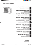 UNITÉ EXTÉRIEUR Pour le personnel de service agrée uniquement. MANUAL DE INSTALACIÓN UNIDAD EXTERIOR Únicamente para personal de servicio autorizado. MANUALE D’INSTALLAZIONE UNITÀ ESTERNA A uso esclusivo del personale tecnico autorizzato. ΕΓΧΕΙΡΙΔΙΟ ΕΓΚΑΤΑΣΤΑΣΗΣ ΕΞΩΤΕΡΙΚΗ ΜΟΝΑΔΑ Μόνο για εξουσιοδοτημένο τεχνικό προσωπικό. MANUAL DE INSTALAÇÃO UNIDADE EXTERIOR Somente para o pessoal do serviço técnico autorizado. РУКОВОДСТВО ПО УСТАНОВКЕ ВНЕШНИЙ МОДУЛЬ Только для авторизованного обслуживающего персонала. KURULUM KILAVUZU DIŞ ÜNİTE Yalnızca yetkili servis personeli için. Deutsch Français MANUEL D’INSTALLATION Español Nur für autorisiertes Fachpersonal. Italiano AUSSENGERÄT EλληvIkά INSTALLATIONSANLEITUNG Português For authorized service personnel only. Русский OUTDOOR UNIT Türkçe INSTALLATION MANUAL English AIR CONDITIONER PART No. 9319205380 9319205380_IM.indb 1 05/09/2019 14:16:20 MANUEL D’INSTALLATION UNITÉ EXTÉRIEUR N° DE PIÈCE 9319205380 AVERTISSEMENT Contenus 1. PRÉCAUTIONS DE SÉCURITÉ...................................................................................... 1 2. INFORMATIONS SUR CE PRODUIT.............................................................................. 3 2.1. Outils spéciaux pour le R32................................................................................... 3 2.2. Accessoires........................................................................................................... 4 3. SPÉCIFICATIONS GÉNÉRALES..................................................................................... 4 3.1. Sélection d'un disjoncteur et câblage.................................................................... 4 3.2. Sélection du matériau des tuyaux......................................................................... 4 3.3. Protection des tuyaux............................................................................................ 4 3.4. Tailles de tuyau de réfrigérant et longueurs de tuyauterie admissibles................. 4 3.5. Charge supplémentaire......................................................................................... 5 4. TRAVAUX D’INSTALLATION............................................................................................ 5 4.1. Choix du lieu d’installation..................................................................................... 5 4.2. Raccordement des eaux usées............................................................................. 5 4.3. Dimensions de l'installation................................................................................... 5 4.4. Installation............................................................................................................. 6 5. INSTALLATION DE L'UNITÉ EXTÉRIEURE.................................................................... 7 5.1. Dépose du couvercle du commutateur.................................................................. 7 5.2. Remarques pour le câblage électrique.................................................................. 7 5.3. Méthode de câblage.............................................................................................. 8 Indique une situation de danger potentiel ou imminent qui, si elle n'est pas évitée, pourrait entraîner des blessures graves, voire mortelles. Lors de l'installation ou du déplacement du climatiseur, ne mélangez pas de gaz autres que le réfrigérant spécifié (R32) pour entrer dans le cycle de réfrigération. Tout pénétration d'air ou de gaz dans le cycle de réfrigération provoque une augmentation anormale de la pression, ainsi qu'une rupture, une blessure, etc. Afin de raccorder l'unité intérieure et extérieure, utilisez de la tuyauterie et des câbles pour climatiseur disponibles localement en pièces standards. Ce manuel décrit les raccordements appropriés au moyen d'un tel kit d'installation. Ne modifiez pas le câble d'alimentation, n'utilisez pas de rallonge ni de dérivation. Une utilisation inappropriée pourrait provoquer un choc électrique ou un incendie suite à une mauvaise connexion, une isolation insuffisante ou une surtension. Ne purgez pas l'air avec des fluides frigorigènes, mais utilisez une pompe à vide pour vidanger le système. Il n'existe pas de réfrigérant supplémentaire dans l'unité extéreure pour purger l'air. Utilisez une pompe à vide exclusivement pour les modèles R32 et R410A. L’utilisation du même équipement de mise sous vide pour différents fluides frigorigènes pourrait endommager la pompe à vide ou l’unité. Utilisez un manomètre et un tuyau de chargement propres exclusivement pour les modèles R32 et R410A. Pour accélérer le processus de dégivrage ou pour nettoyer, n'utilisez pas de moyens autres que ceux recommandés par le fabricant. L'appareil doit être stocké dans une pièce sans source d'inflammation fonctionnant en continu (par exemple des flammes nues, un appareil à gaz en service ou un chauffage électrique en service). Ne pas percer ni brûler. 5.4. Raccordement des tuyaux..................................................................................... 8 Gardez à l'esprit que les réfrigérants peuvent n'avoir aucune odeur. 5.5. Test d'étanchéité.................................................................................................... 9 Pendant l’opération de pompage, assurez-vous que le compresseur est éteint avant de retirer le tuyau de fluide frigorigène. Ne retirez pas le tuyau de connexion tant que le compresseur est en service avec la valve à 3 voies ouverte. Ceci peut causer une pression anormale dans le cycle de réfrigération entraînant une rupture et même une blessure. 5.6. Mise sous vide....................................................