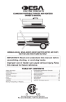 CANADIAN PORTABLE FORCED AIR HEATERS OWNER’S MANUAL MODELS: BC40, RC40, BC55T, RC55T, BC70T, RC70T, BC115CT, RC115CT, BC165CT AND RC165CT IMPORTANT: Read and understand this manual before assembling, starting, or servicing heater. Improper use of heater can cause serious injury. Keep this manual for future reference. TABLE OF CONTENTS Safety Information ............................................... 2 Unpacking ........................................................... 2 Product Identification ........................................... 3 Assembly ............................................................. 4 Theory of Operation ............................................ 5 Fuels .................................................................... 5 Ventilation ........................................................... 6 Operation ............................................................ 6 Storing, Transporting, or Shipping ....................... 7 Preventative Maintenance Schedule ................... 7 Troubleshooting ................................................... 8 Service Procedures ............................................. 9 Wiring Diagrams ............................................... 15 Illustrated Parts Breakdown and Parts List ....... 16 Specifications .................................................... 24 Accessories ....................................................... 25 Warranty and Repair Service ............................ 28 Save this manual for future reference. For more information, visit www.desatech.com SAFETY INFORMATION IMPORTANT: Read this owner’s manual carefully and completely before trying to assemble, operate, or service this heater. Improper use of this heater can cause serious injury or death from burns, fire, explosion, electrical shock, and carbon monoxide poisoning. DANGER: Carbon monoxide poisoning may lead to death! Early signs of carbon monoxide poisoning resemble the flu, with headaches, dizziness, and/or nausea. If you have these signs, the heater may not be working properly. Get fresh air at once! Have heater serviced. Some people (such as pregnant women, persons with heart or lung disease, persons with anemia, those under the influence of alcohol, and those at high altitudes) are more affected by carbon monoxide than others. 1. Use only kerosene, #1/#2 diesel/fuel oil, JET A or JP-8 fuels to avoid risk of fire or explosion. Never use gasoline, naphtha, paint thinners, alcohol, or other highly flammable fuels. 2. Use only with the electrical voltage and frequency specified on model plate. 3. Heater must be grounded. Use only a properly grounded three-wire extension cord. Plug into grounded outlet only. 4. Use only in areas free of flammable vapors or high dust content. 5. Minimum clearance from any combustible materials: 8 feet (244 cm) from hot air outlet; 6 feet (183 cm) from top; and 2 feet (61 cm) from sides and inlet. 6. Locate heater on a stable and level surface while hot or operating or a fire may occur. 7. Use only in well ventilated areas. Provide ventilation of at least three square feet (2,800 square cm) for each 100,000 Btu/Hr of rating. 8. Keep children and animals away from heater at all times. 9. Never start heater when combustion chamber is hot or if fuel has accumulated in combustion chamber. 10. When used with a thermostat, heater may start at anytime. 2 11. When heater is moved or stored, it must be in a level position or fuel spillage may occur. 12. Use heater only in accordance with local ordinances and codes. 13. Never use gasoline, crankcase drainings, naphtha, paint thinners, alcohol, or other highly flammable fuels. 14. Never use heater where gasoline, paint thinner, or other highly flammable vapors are present. 15. Never use heater in living or sleeping areas. 16. Never leave a heater plugged in without adult supervision if children or animals are likely to be present. 17. Never move, handle, refuel, or service a hot, operating, or plugged-in heater. 18. Never block air inlet at motor end (rear) of heater. 19. Never attach duct work to front of heater. 20. Never attach heater to external fuel tank. UNPACKING 1. Remove all protective packaging that has been applied to heater for shipment 2. Remove heater from carton. 3. Check heater for any shipping damage. If damage is found, promptly inform dealer where heater was purchased. www.desatech.com 111168-01A PRODUCT IDENTIFICATION Nose Cone Guard Hot Air Outlet Upper Shell Handle Fan Guard Lower Shell Air Filter End Cover Fuel Tank Fuel Cap Side Cover Ignition Control Assembly (assembly on inside of side cover) Power Cord Hot Air Outlet Figure 1 - 40 Model Nose Cone Guard Upper Shell Handle Fan Guard Thermostat Knob Lower Shell Fuel Tank Air Filter End Cover Side Cover Ignition Control Assembly (assembly on inside of side cover) Fuel Cap Power Cord Figure 2 - 55T/70T Models Hot Air Outlet Upper Shell Thermostat Knob Fan Guard Lower Shell Fuel Cap Side Cover Ignition Control Assembly (assembly on inside of side cover) Power Cord Fuel Tank Figure 3 - 115T/165T Models 111168-01A www.desatech.com 3 ASSEMBLY (FOR 115T AND 165T MODELS ONLY) (FOR 40, 55T, AND 70T MODELS ONLY) These models are furnished with a nose cone guard. Nose cone guard and mounting screws are found in the shipping carton. Tools Needed • 5/16" Nut Driver or Wrench 1. Place nose cone guard on top of upper shell flange. Make sure nose cone guard is on hot air outlet end of heater. 2. Insert screws through nose cone guard and upper shell flange. 3. Tighten screws firmly. Nose Cone Guard Screw Hot Air Outlet These models are furnished with wheels and a front handle. Some models are furnished with a rear handle also. Wheels, handle(s), and the mounting hardware is found in the shipping carton. Tools Needed • Medium Phillips Screwdriver • 3/8" Open or Adjustable Wrench • Hammer 1. Slide axle through wheel support frame. Install wheels on axle. IMPORTANT: Place extended hub of wheel tow
