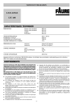 NOTICE D'UTILISATION LAVE-LINGE LTC 400 CARA CTERISTIQ UES TECHNIQ UES CARACTERISTIQ CTERISTIQUES TECHNIQUES DIMENSIONS Hauteur avec dosseret Hauteur sans dosseret Largeur Profondeur TENSION/FREQUENCE PUISSANCE TOTALE PUISSANCE DE CHAUFFAGE CALIBRE MINIMUM DU FUSIBLE 895 mm 850 mm 397 mm 600 mm 230 V / 50 Hz 2300 W 1950 W 10 A PRESSION DE L'EAU minimum maximum 5 N/cm² (0,5 kg/cm2) 80 N/cm² (8 kg/cm2) CHARGE MAXIMUM coton tissus synthétiques laine 5 kg 2,5 kg 1 kg VITESSE D'ESSORAGE 400 tr/min Appareil conforme à la directive CEE 89-336 relative à la limitation des perturbations radio-électriques et à la directive CEE 73-23 relative à la sécurité électrique. AVER TISSEMENTS VERTISSEMENTS Il est très important que cette notice d'utilisation soit conservée avec l'appareil pour toute future consultation. Si cet appareil devait être vendu ou transféré à une autre personne, assurez-vous que la notice d'utilisation suive l'appareil, de façon à ce que le nouvel utilisateur puisse être informé du fonctionnement de celui-ci et des avertissements s'y rapportant. Ces avertissements ont été rédigés pour votre sécurité et pour celle d'autrui. Nous vous prions donc de bien vouloir les lire attentivement avant d'installer et d'utiliser l'appareil. Votre appareil est destiné à un usage domestique. Ne l'utilisez pas à des fins commerciales ou industrielles ou pour d'autres buts que celui pour lequel il a été conçu. A la réception de l'appareil, nous vous prions de faire les "réserves d'usage" en présence du livreur (dégâts esthétiques par exemple). Cet appareil a été conçu pour être utilisé par des adultes. Veillez donc à ce que les enfants n'y touchent pas ou qu'ils ne l'utilisent pas comme un jouet. Il est dangereux de modifier ou d'essayer de modifier les caractéristiques de cet appareil. Si l'installation de votre habitation nécessite une modification pour le branchement de votre appareil, faites appel à un électricien qualifié. Tous travaux hydrauliques nécessaires à l'installation de l'appareil ne seront confiés qu'à un plombier qualifié. Assurez-vous, après avoir installé l'appareil, que celui-ci ne repose pas sur le câble d'alimentation. Débranchez toujours la prise de courant et fermez le robinet d'arrivée d'eau après utilisation de l'appareil. Cet appareil est lourd. Faites attention lors de son déplacement. -1- L'appareil doit être débridé avant utilisation. La non-élimination ou l'élimination incomplète des dispositifs de protection pour le transport pourrait occasionner des dommages à l'appareil ou aux meubles. Suivez à ce propos le paragraphe relatif dans la notice d'utilisation. Ne lavez en machine que les articles pouvant supporter ce traitement. Suivez les indications se trouvant sur l'étiquette dont chaque article est muni. Ne lavez pas en machine le linge avec baleines, les tissus non ourlés ou déchirés. Les pièces de monnaie, épingles de sûreté, broches, vis, etc. qui sont restées dans le linge peuvent provoquer des dommages importants. Les articles détachés à l'essence, à l'alcool, au trichloréthylène, etc. ne doivent pas être mis dans un lave-linge. Si de tels détachants sont utilisés avant le lavage en machine, il faudra attendre que le produit se soit évaporé avant d'introduire les articles dans l'appareil. Groupez les petits articles, tels que chaussettes, ceintures, etc. dans un petit sac de toile ou une taie. Cela dans le but d'éviter que ces pièces ne puissent se glisser entre le tambour et la cuve. N'utilisez que la quantité de produit assouplissant indiquée par le fabricant. Une quantité excessive pourrait être à l'origine de traces sur le linge. Si vous procédez à la mise à la casse de votre appareil, veillez à mettre hors d'usage ce qui pourrait représenter un danger : coupez le câble d'alimentation au ras de l'appareil et détériorez le dispositif de fermeture de la porte. INST ALLA TION INSTALLA ALLATION ATTENTION : les pièces servant à protéger les organes internes du lave-linge pendant le transport sont de couleur rouge. Afin d'éviter de possibles dommages à l'appareil, il est indispensable d'enlever le socle, les deux goujons plastiques à l'arrière de l'appareil et la cale en polystyrène (suivre les instructions de la feuille de débridage). Bouchez impérativement les 2 trous laissés par les 2 goujons par les bouche-trous qui se trouvent dans la pochette plastique livrée avec l'appareil ; n'oubliez pas de rabattre la capsule centrale. Emplacement Branchement électrique L'installation de votre appareil nécessite : Une alimentation électrique (voir branchement électrique) Une arrivée d'eau avec branchement 20 x 27 Une évacuation d'eau Un local aéré Ce lave-linge ne peut être branché qu'en 230 V monophasé. Vérifiez que le compteur de l'abonné et les fusibles peuvent supporter l'intensité absorbée par le lave-linge, compte-tenu des autres appareils électriques branchés. Calibre des fusibles de ligne (un par phase) : 10 A en 230 V mono. Important L'installation doit être réalisée conformément aux règles de l'art, aux prescriptions de la norme NF. C. 15.100 et aux prescriptions de l'E.D.F. Utilisez un socle de prise de courant comportant une borne de mise à la terre, qui doit être obligatoirement raccordée conformément à la norme NF. C. 15.100 et aux prescriptions de l'E.D.F. Placez l'appareil sur un sol plat et dur. Veillez à ce que l'appareil ne touche pas le mur ou les autres meubles de la cuisine. Le robinet, l'installation pour la vidange et la prise de courant doivent se trouver à proximité des tuyaux de la machine et du câble d'alimentation. Le remplacement du cordon secteur ne doit être effectué que par le Service Après Vente. Raccordement d'eau B La ligne d'alimentation électrique partant du compteur ne devra pas être inférieure à 4 mm2 par conducteur. Vérifiez que la prise de terre est bien conforme aux règlement