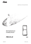 NOTICE D’UTILISATION RÉFRIGÉRATEUR CONGÉLATEUR FRD 23 JC 200380176 FR F/FA/80. (05.) FR Lors de sa fabrication, cet appareil a été construit selon des normes, directives et/ou décrets pour une utilisation sur le territoire français. Pour la sécurité des biens et des personnes ainsi que pour le respect de l'environnement, vous devez d'abord lire impérativement les préconisations suivantes avant toute utilisation de votre appareil. Pour éviter tout risque de détérioration de l'appareil, transportez-le dans sa position d'utilisation muni de ses cales de transport (selon modèle). Au déballage de celui-ci, et pour empêcher des risques d'asphyxie et corporel, tenez les matériaux d'emballage hors de la portée des enfants. Pour éviter tout risque (mobilier, immobilier, corporel,…), l'installation, les raccordements (eau, gaz, électricité, évacuation selon modèle), la mise en service et la maintenance de votre appareil doivent être effectués par un professionnel qualifié. Votre appareil a été conçu pour être utilisé par des adultes. Il est destiné à un usage domestique normal. Ne l'utilisez pas à des fins commerciales ou industrielles ou pour d'autres buts que ceux pour lesquels il a été conçu. Vous éviterez ainsi des risques matériel et corporel. Débranchez votre appareil avant toute opération de nettoyage manuel. N'utilisez que des produits du commerce non corrosifs ou non inflammables. Toute projection d'eau ou de vapeur est proscrite pour écarter le risque d'électrocution. Si votre appareil est équipé d'un éclairage, débranchez l'appareil avant de procéder au changement de l'ampoule (ou du néon, etc.) pour éviter de s'électrocuter. Afin d'empêcher des risques d'explosion et d'incendie, ne placez pas de produits inflammables ou d'éléments imbibés de produits inflammables à l'intérieur, à proximité ou sur l'appareil. Lors de la mise au rebut de votre appareil, et pour écarter tout risque corporel, mettez hors d'usage ce qui pourrait présenter un danger: coupez le câble d'alimentation au ras de l'appareil. Informez-vous auprès des services de votre commune des endroits autorisés pour la mise au rebut de l'appareil. Respectez la chaîne de froid dès l'acquisition d'un aliment jusqu'à sa consommation pour exclure le risque d'intoxication alimentaire. Veuillez maintenant lire attentivement cette notice pour une utilisation optimale de votre appareil. Conservez cette notice d'utilisation avec votre appareil. Si l'appareil devait être vendu ou cédé à une autre personne, assurez-vous que la notice d'utilisation l'accompagne. Le nouvel utilisateur pourra alors être informé du fonctionnement de celui-ci et des avertissements s'y rapportant. Ces avertissements ont été rédigés pour votre sécurité et celle d'autrui. Comment lire votre notice d'utilisation? Les symboles suivants vous guideront tout au long de la lecture de votre notice d'utilisation. Instructions de sécurité Conseils et recommandations Informations liées à la protection de l'environnement Conseils pratiques (stockage des aliments) Le symbole sur le produit ou son emballage indique que ce produit ne peut être traité comme déchet ménager. Il doit plutôt être remis au point de ramassage concerné, se chargeant du recyclage du matériel électrique et électronique. En vous assurant que ce produit est éliminé correctement, vous favorisez la prévention des conséquences négatives pour l'environnement et la santé humaine qui, sinon, seraient le résultat d'un traitement inapproprié des déchets de ce produit. Pour obtenir plus de détails sur le recyclage de ce produit, veuillez prendre contact avec le bureau municipal de votre région, votre service d'élimination des déchets ménagers ou le magasin où vous avez acheté le produit. 2 FR Sommaire Avertissements importants ...............................................................................................................44 Utilisation ........................................................................................................................................................4 Sécurité des enfants .....................................................................................................................................5 Installation.......................................................................................................................................................5 Protection de l'environnement.....................................................................................................................5 A l'attention de l'utilisateur.................................................................................................................66 Description de l'appareil ..............................................................................................................................66 Utilisation ........................................................................................................................................................7 Mise en service..............................................................................................................................................7 Réglage de la température ..........................................................................................................................7 Compartiment réfrigérateur.........................................................................................................................8 Emplacement des denrées ..........................................................................................................................8 Stockage des aliments .................................................................................................................................9 Compartiment congélateur.............................................................................................................