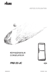 NOTICE D’UTILISATION RÉFRIGÉRATEUR CONGÉLATEUR FRD 23 JC 200380376 FR F/FA/80-1. (06.) FR Lors de sa fabrication, cet appareil a été construit selon des normes, directives et/ou décrets pour une utilisation sur le territoire français. Pour la sécurité des biens et des personnes ainsi que pour le respect de l'environnement, vous devez d'abord lire impérativement les préconisations suivantes avant toute utilisation de votre appareil. Pour éviter tout risque de détérioration de l'appareil, transportez-le dans sa position d'utilisation muni de ses cales de transport (selon modèle). Au déballage de celui-ci, et pour empêcher des risques d'asphyxie et corporel, tenez les matériaux d'emballage hors de la portée des enfants. Pour éviter tout risque (mobilier, immobilier, corporel,…), l'installation, les raccordements (eau, gaz, électricité, évacuation selon modèle), la mise en service et la maintenance de votre appareil doivent être effectués par un professionnel qualifié. Votre appareil a été conçu pour être utilisé par des adultes. Il est destiné à un usage domestique normal. Ne l'utilisez pas à des fins commerciales ou industrielles ou pour d'autres buts que ceux pour lesquels il a été conçu. Vous éviterez ainsi des risques matériel et corporel. Débranchez votre appareil avant toute opération de nettoyage manuel. N'utilisez que des produits du commerce non corrosifs ou non inflammables. Toute projection d'eau ou de vapeur est proscrite pour écarter le risque d'électrocution. Si votre appareil est équipé d'un éclairage, débranchez l'appareil avant de procéder au changement de l'ampoule (ou du néon, etc.) pour éviter de s'électrocuter. Afin d'empêcher des risques d'explosion et d'incendie, ne placez pas de produits inflammables ou d'éléments imbibés de produits inflammables à l'intérieur, à proximité ou sur l'appareil. Lors de la mise au rebut de votre appareil, et pour écarter tout risque corporel, mettez hors d'usage ce qui pourrait présenter un danger: coupez le câble d'alimentation au ras de l'appareil. Informez-vous auprès des services de votre commune des endroits autorisés pour la mise au rebut de l'appareil. Respectez la chaîne de froid dès l'acquisition d'un aliment jusqu'à sa consommation pour exclure le risque d'intoxication alimentaire. Veuillez maintenant lire attentivement cette notice pour une utilisation optimale de votre appareil. Conservez cette notice d'utilisation avec votre appareil. Si l'appareil devait être vendu ou cédé à une autre personne, assurez-vous que la notice d'utilisation l'accompagne. Le nouvel utilisateur pourra alors être informé du fonctionnement de celui-ci et des avertissements s'y rapportant. Ces avertissements ont été rédigés pour votre sécurité et celle d'autrui. Comment lire votre notice d'utilisation? Les symboles suivants vous guideront tout au long de la lecture de votre notice d'utilisation. Instructions de sécurité Conseils et recommandations Informations liées à la protection de l'environnement Conseils pratiques (stockage des aliments) Le symbole sur le produit ou son emballage indique que ce produit ne peut être traité comme déchet ménager. Il doit plutôt être remis au point de ramassage concerné, se chargeant du recyclage du matériel électrique et électronique. En vous assurant que ce produit est éliminé correctement, vous favorisez la prévention des conséquences négatives pour l'environnement et la santé humaine qui, sinon, seraient le résultat d'un traitement inapproprié des déchets de ce produit. Pour obtenir plus de détails sur le recyclage de ce produit, veuillez prendre contact avec le bureau municipal de votre région, votre service d'élimination des déchets ménagers ou le magasin où vous avez acheté le produit. 2 FR Sommaire Avertissements importants ...............................................................................................................44 Utilisation ........................................................................................................................................................4 Sécurité des enfants .....................................................................................................................................5 Installation.......................................................................................................................................................5 Protection de l'environnement.....................................................................................................................5 A l'attention de l'utilisateur.................................................................................................................66 Description de l'appareil ..............................................................................................................................66 Utilisation ........................................................................................................................................................7 Mise en service..............................................................................................................................................7 Réglage de la température ..........................................................................................................................7 Compartiment réfrigérateur.........................................................................................................................8 Emplacement des denrées ..........................................................................................................................8 Stockage des aliments .................................................................................................................................9 Compartiment congélateur...........................................................................................................