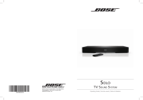 Solo ©2012 Bose Corporation, The Mountain, Framingham, MA 01701-9168 USA AM353759 Rev. 00 TV Sound System Operating Guide | Guía de usuario | Notice d’utilisation Cinnamon_OG_FRA.book Page 2 Friday, January 27, 2012 8:04 PM INFORMATIONS RELATIVES À LA SÉCURITÉ Veuillez lire ce guide Prenez le temps de lire attentivement les instructions de cette notice d’utilisation. Elles vous seront précieuses pour installer et utiliser correctement votre système et vous aideront à tirer le meilleur parti de sa technologie. Conservez cette notice d’utilisation pour référence ultérieure. Tous les produits Bose doivent être utilisés en respectant les réglementations locales et nationales. Le symbole représentant un éclair avec une flèche à l’intérieur d’un triangle équilatéral est utilisé pour prévenir l’utilisateur de la présence d’une tension électrique dangereuse non isolée à l’intérieur de l’appareil. Cette tension est d’un niveau suffisamment élevé pour représenter un risque d’électrocution. Le symbole représentant un point d’exclamation à l’intérieur d’un triangle équilatéral, tel qu’il figure sur le système, signale à l’utilisateur la présence d’instructions importantes relatives au fonctionnement et à l’entretien de l’appareil dans cette notice d’installation. AVERTISSEMENT : Ce produit contient des aimants dont la proximité peut être dangereuse en cas de port d’un stimulateur cardiaque. AVERTISSEMENT : Certaines pièces présentent un risque de suffocation. Ne pas laisser à la portée des enfants de moins de 3 ans. AVERTISSEMENT : • Ne jamais placer l’équipement sur un support instable. Il pourrait tomber et être détruit ou vous blesser. De nombreux accidents, en particulier avec les enfants, peuvent être évités en prenant quelques précautions : • Utiliser les supports recommandés par le fabricant de l’appareil. • Utiliser uniquement des meubles capables de soutenir l’appareil sans risque. • Veiller à ce que l’appareil ne déborde pas du meuble sur lequel il est posé. • Ne pas placer l’appareil sur un meuble élevé (par exemple, armoire ou étagère) sans fixer ce meuble et l’appareil à un support approprié. • Ne pas placer de napperon, tapis ou autre pièce de tissu entre l’appareil et le meuble sur lequel il repose. • Expliquer aux enfants qu’il est dangereux de tenter de toucher à l’appareil en grimpant sur un meuble ou un objet. • En cas de doute sur votre capacité à monter le téléviseur ou installer cet appareil, contactez un installateur professionnel. AVERTISSEMENT : Ne laissez pas les enfants pousser, tirer ou prendre appui sur un téléviseur connecté à cet appareil, cela risquerait de le faire basculer et d’entraîner de graves blessures ou la mort. Pour plus de sécurité et de stabilité, sécurisez le téléviseur à l’aide d’un système anti-basculement. Renseignements à noter et conserver : Le modèle et le numéro de série sont indiqués sous l’appareil. Numéro de série _______________________________________ Modèle _______________________________________________ Date d’achat __________________________________________ Nous vous conseillons de conserver votre reçu avec ce manuel de l’utilisateur. 2 – Français Cinnamon_OG_FRA.book Page 3 Friday, January 27, 2012 8:04 PM INFORMATIONS RELATIVES À LA SÉCURITÉ AVERTISSEMENT : • Pour limiter les risques d’incendie ou d’électrocution, n’exposez pas l’appareil à la pluie ou à l’humidité. • Protégez l’appareil de tout risque de ruissellement ou d’éclaboussure. Ne placez pas d’objets contenant des liquides, tels que des vases, sur l’appareil. Comme avec tout appareil électronique, veillez à ne pas renverser de liquides sur aucune partie de l’appareil. Les liquides peuvent provoquer des pannes et/ou un risque d’incendie. • Ne jamais placer d’objets enflammés, tels que des bougies allumées, sur l’appareil. AVERTISSEMENT : • Conservez la pile de la télécommande hors de portée des enfants. En cas de manipulation inappropriée, elle risque de provoquer un incendie ou des brûlures chimiques. Ne la rechargez pas, ne la démontez pas, ne la portez pas à une température supérieure à 100 °C et ne l’incinérez pas. Pour jeter les piles usagées, respecter la réglementation locale. Remplacez la pile uniquement par une pile du même type, portant la même référence. • La pile risque d’exploser si elle est remplacée par une pile inappropriée. Utilisez uniquement une pile au lithium approuvée de 3 volts, de type CR2032 ou DL3032. ATTENTION : N’apportez aucune modification au système ou aux accessoires. Toute modification non autorisée peut compromettre votre sécurité, le respect des réglementations et les performances, et invalidera la garantie. Remarque : • Lorsque la fiche d’alimentation ou la prise multiple est utilisée comme dispositif de débranchement de l’appareil, elle doit rester facilement accessible. • Ce produit doit être utilisé à l’intérieur. Il n’a pas été conçu ni testé pour une utilisation en extérieur, dans des véhicules ou sur des bateaux. • L’étiquette d’identification du produit est située à la base ou à l’arrière de l’appareil. Veillez à vous débarrasser de vos piles usagées conformément aux réglementations locales. Ne les incinérez pas. Ce produit est conforme à toutes les directives de la Communauté Européenne qui s’y appliquent. L’attestation complète de conformité est disponible à l’adresse www.Bose.com/compliance. Noms et contenu des substances ou éléments toxiques ou dangereux Substances ou éléments toxiques ou dangereux Nom Plomb (Pb) Mercure Cadmium (Hg) (Cd) Chrome hexavalent (CR(VI)) Biphényle polybromé (PBB) Ether de diphényle polybromé (PBDE) 0 Polychlorobiphényles X 0 0 0 0 Pièces métalliques X 0 0 0 0 0 Pièces en plastiqu