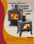 WOOD STOVES EASTWOOD 1500 & 1800 POÊLES À BOIS EASTWOOD 1800 EASTWOOD 1500 • Heavy-gauge plate steel top - Dessus en acier massif • High quality vermiculite baffle - Coupe-feu en vermiculite de haute qualité • Adjustable handle - Poignée ajustable w w w . d r o l e t . c a ® 1700, Léon-Harmel Québec (Québec) G1N 4R9 www.drolet.ca [email protected] Technical data Fiche Technique Drolet wood stoves are approved by Omni, under the U.L.C. S627 and U.L. 1482, as well as the American Standards, Anti-pollution Phase II of the Environmental Protection Agency (E.P.A.). Les poêles à bois Drolet sont homologués par Omni selon les normes U.L.C. S627 et U.L. 1482, ainsi que selon la norme “AntiPollution Phase II”, de l’Agence de Protection Environnemental des États-Unis (E.P.A.) EASTWOOD 1800 DB03160 EASTWOOD 1500 DB03150 Recommended surface (ft2/m2) - Surface recommandée (pi2/m2) : 800 to / à 1,500 ft2 / pi2 (75 to / à 139 m2) 850 to / à 1,800 ft2 / pi2 (79 to / à 168 m2) Fuel type - Type de combustible : Wood - Bois Wood - Bois Heating capacity (BTU/h, KW) - Capacité : E.P.A. test fuel - Bois de test EPA : 40,500 BTU (11,9 KW) 45,000 BTU (13,2 KW) Seasoned cordwood - Bois de corde sec : 45,000 BTU (13,2 KW) 60,000 BTU (17,6 KW) Efficiency - Efficacité : 70 % 70 % Average emissions - Emissions moyennes : 5,7 g/h 6,4 g/h Color - Couleur : Metallic black - Noir métallique Metallic black - Noir métallique Ash drawer - Tiroir à cendres : No/Non Yes/Oui Exterior dimensions (in/mm) - Dimensions extérieures (po/mm) : Width - Largeur : 25 1/4” (642 mm) 25 1/4” (642 mm) Depth - Profondeur : 22 1/2” (569 mm) 26” (661 mm) Height - Hauteur : 29” (733 mm) 30 1/2” (775 mm) Flue pipe diameter - Diamètre du tuyau d’évacuation : 6” (153 mm) 6” (153 mm) Chimney type - Type de cheminée : 2100 OF / 650 OC 2100 OF / 650 OC Minimum chimney height (ft/m)-Hauteur minimale de la cheminée (pi/m): 12’ (3,66 m) 12’ (3,66 m) Firebox dimensions (in/mm) - Dimensions de la chambre de combustion (po/mm) : Width - Largeur : 21” (532 mm) 21” (532 mm) Depth - Profondeur : 13 1/2” (343mm) 16 1/2” (420 mm) Volume (ft3) - Volume (pi3) : 1,6 2,3 Log loading over - Chauffe sur la : Width - largeur Width - largeur Maximum log lenght (in/mm) -Longueur maximale des bûches (po/mm) : 20” (508 mm) 20” (508 mm) Door opening dimensions (in/mm) - Dimensions de l’ouverture de porte (po/mm) : Width - Largeur : 17 1/2” (445 mm) 17 1/2” (445 mm) Height - Hauteur : 9” (229 mm) 9” (229 mm) Door type - Type de porte : Glass with cast iron frame - Vitrée avec cadre en fonte Pyroceramic glass surfce (in/mm) - Surface vitrée en pyrocéramique (po/mm) : Width - Largeur : 15 1/2” (394 mm) 17 9/16” (450 mm) Height - Hauteur : 7 1/2” (191 mm) 8 3/4” (220 mm) Weight - Poids (Ibs / kg) : 328 lbs (149 kg) 374 lbs (170 kg) Limited warranty - Garantie limitée : Lifetime - À vie Lifetime - À vie Clearances to combustibles (in) - Dégagements aux combustibles (po) : Single wall pipe / Tuyau à simple paroi Double wall pipe / Tuyau à double paroi Back / arrière 20” 20” Sides / Côtés 19” 19” Corners / Coins 14” 14” Back / arrière Sides / Côtés Corners / Coins 18” 18” 12” 18” 18” 12” Options • 130 CFM Blower with variable speed control / Ventilateur à vitesse variable 130 PCM AC03095 7 • Blower thermodisc kit / Ensemble de thermodisque de ventilateur 99539 PUB058 73388 AC05530 7 Some changes may have been made to the products after the publication of this brochure. SBI reserves itself the right to modify its products without any obligation on its part. Il est possible que certains changements aient été apportés aux produits après la publication de cette brochure. SBI se réserve le droit de modifier ses produits en tout temps sans obligation de sa part. ® ">