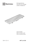 Montageanleitung Instruction de montage Libretto installazione Aktivkohlefilter Filtre à charbon actif Filtro al carbone attivo 56419 02.19 AKF LL 45-20 Montageanweisung Aktivkohlefilter D Das Set 902 980 068 Regenerierbarer LongLife Filter (AKF LL45-20) für DA GL 55 DA GL 60 DA SL 55 DA SL 60 DA SL 82 DA SL 90 besteht aus: 1x Aktivkohlefilter 3 1x Montage- und Gebrauchsanleitung 1x Erinnerungskleber 4 Nr. 56331 ( bei DA SL 55, DA SL 60, DA SL 82, DA SL 90 nicht nötig, da die Elektronik daran erinnert ) Montage 1. 2. Auszug 1 herausziehen ( Gebläse läuft! ) Metallfilter 2 hinten heraufdrücken und nach vorne herausnehmen. 1 2 3 2 4 3. 4. Aktivkohlefilter 3 in Pfeilrichtung a in die Aufnahmen schieben, dann vorne hochklappen b und beide Seiten, links und rechts, hochdrücken bis beide Federn einschnappen. Metallfilter 2 einsetzen. a b a 3 b 2 Wichtig: Aktivierung der Kontrollfunktion Kontrolllampe Aktivkohlefilter Bei Geräten mit Touch-Control: Bei Umluftbetrieb und dem Einbau eines Aktivkohlefilters empfiehlt es sich, die Kontrollfunktion für den Aktivkohlefilter zu aktivieren. Um diese Funktion zu aktivieren, die Taste 1 und 3 während 10 Sekunden gedrückt halten, bis die Kontrolllampe C aufleuchtet. Bei älteren Geräten mit Folientastatur : Bei Umluftbetrieb und dem Einbau eines Aktivkohlefilters empfiehlt es sich, die Kontrollfunktion für den Aktivkohlefilter zu aktivieren. Um diese Funktion zu aktivieren, die Taste 2 während 10 Sekunden gedrückt halten, bis die Kontrolllampe C aufleuchtet. D Regenerierbarer Aktivkohlefilter AKF LL 45-20 D Gebrauchsanweisung Vor dem ersten Gebrauch muss die Aktivkohle regeneriert werden, da jede Kohle, auch Aktivkohle Feuchtigkeit aufnimmt. Diese Feuchtigkeit muss entzogen werden. Die Filterkassette flach auf den Gitterrost Ihres Backofens legen und bei 230°C eine Stunde lang aufheizen. Lassen Sie den Filter anschliessend 2 Stunden vollständig abkühlen! Bei zu frühem Einlegen kann die Dunstabzugshaube durch die Restwärme der Kohle beschädigt werden. Der Regeneriervorgang kann eine Verfärbung des Filters bewirken. Der Filter kann danach wieder in die Dunstabzugshaube eingesetzt werden. Nun ist Ihr Gerät funktionsbereit. Die Regenerierung Feuchtigkeit und Fettpartikel verrigern das Aufnahmevermögen. Daher muss nach spätestens 2 Monaten die Aktivkohle regeneriert werden. Die Filterkassette flach auf den Gitterrost Ihres Backofens legen und bei 230°C eine Stunde lang aufheizen. Lassen Sie den Filter anschliessend 2 Stunden vollständig abkühlen! Der Filter kann danach wieder in die Dunstabzugshaube eingesetzt werden. Nun ist Ihr Gerät für weitere 2 Monate funktionstüchtig. Als Erinnerungshilfe für die Regenerierung liegt dem Set ein rot markierter Kleber bei. (Tipp: Auf die Innenseite der Gewürzschranktüre anbringen, keinesfalls auf die Dunstabzugshaube.) Der Filter verliert nach ca. 4 Jahren seine Wirksamkeit und sollte komplett ersetzt werden (Spezialkohle kann nicht nachgefüllt werden). Electrolux AG, 8048 Zürich, Tel. 044/405‘81‘11 Instruction de montage Filtre à charbon actif AKF LL 45-20 F Instruction de montage filtre à charbon actif L‘assortiment 902 980 068 filtre régénérable Long Life (AKF LL45-20) pour DA GL 55 DA GL 60 DA SL 55 DA SL 60 DA SL 82 DA SL 90 contient: 1x Filtre à charbon actif 3 1x Instruction de montage et mode d‘emploi 1x Autocollant de rappel 4 n° 56331 ( n’est pas nécessaire pour les modèles DA SL 55, DA SL 60, DA SL 82, DA SL 90 car l’électronique sert d’aide-mémoire ) Montage 1. 2. Tirer le dispositif de décharchement 1 ( Ventilateur en marche! ). Poussez le filtre métallique 2 vers le haut à l’arrière et retirez-le vers l’avant. 1 2 3 2 4 3. 4. Glissez le filtre à charbon actif 3 dans le sens des flèches a dans ses logements, puis rabattez l’avant vers le haut b exercer une pression des deux côtés, à gauche et à droite, jusqu’à ce que les ressorts s’enclenchent. Introduire le filtre métallique 2 . a b a 3 b 2 Important: Activation de la fonction de contrôle lumineux indique filtre à charbon actif Pour les appareils avec contrôle tactile: Dans le cas d’un fonctionnement à recyclage d’air et installation d’un filtre à charbon actif, il est conseillé d’activer la fonction de contrôle pour le filtre à charbon actif. Pour activer cette fonction, maintenez la touche 1 et 3 appuyée pendant 10 secondes, jusqu’à ce que le témoin lumineux C s’allume. Pour les appareils plus anciens avec clavier à membrane: Dans le cas d’un fonctionnement à recyclage d’air et installation d’un filtre à charbon actif, il est conseillé d’activer la fonction de contrôle pour le filtre à charbon actif. Pour activer cette fonction, maintenez la touche 2 appuyée pendant 10 secondes, jusqu’à ce que le témoin lumineux C s’allume. F F Filtre à charbon actif régénérable AKF LL 45-20 Mode d‘emploi Le charbon actif peut retenir l‘humidité, ce qui diminue sa capacité d‘absorber les odeurs. C‘est pourquoi, avant la première utilisation, il est nécessaire d‘éliminer cette humidité du filtre à charbon actif. Posez la cassette du filtre à plat sur la grille de votre four et chauffez-la pendant une heure à 230°C. Laissez ensuite refroidire pendant deux heures. 1 est important que le filtre soit totalement refroidi avant l‘emplacement dans l‘hotte, la chaleur pourrait endommager l‘hotte. Un changement de couleur du filtre est normal, la fonction n‘est cependant pas affectée. Le filtre est maintenant prêt à l‘emploi et peut être monter dans l‘hotte. Régénération L‘humidité et les particules de graisse diminuent la capacité d‘absorption du filtre à charbon actif. C‘est pourquoi le charbon actif doit être régénéré au plus tard après 2 mois. Posez la cassette du filtre à plat sur la grille de votre four et chauffez-la pendant une heure à 230°C. Laissez ensuite refroidire pendant deux heures. L