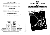 SERVICE APRES-VENTE Les éventuelles interventions sur votre lave-linge doivent être effectuées : — Soit par votre revendeur. — soit par un autre professionnel qualifié dépositaire de la marque Lors de votre appel, mentionnez la référence complète de votre appareil (type, capacité, numéro de série). Ces renseignement figurent sur le certificat de garantie et sur la plaquette signalétique fixée au dos de votre appareil. PIÈCES D'ORIGINE Lors d'une intervention d'entretien, demandez à votre distributeur que seules des pièces détachées certifiées d'origine soient utilisées. Comme celles qui se trouvent dans votre appareil, elles sont fabriquées avec le même soin par les mêmes hommes qui leur ont fait subir les mêmes contrôles. CONSOMMATION D'ÉNERGIE Une étiquette adhésive indiquant la consommation en énergie de votre appareil est jointe à cette notice : pour ne pas l'égarer. vous pouvez la coller ici. _ e Cd. ome Service consommateur | |S.1.1. (Services Information ARTEL lavage) de LEVER Pour tout commentaire {Fabricant de SKIP et concernant l'échantillon CAJOUINE] Tel [1] 47.73 55.16 Pans. grotut d'ARIEL que vous — Sur simple appel ovez du trouver dans cette PRODUIT LESSIVIEL ARIEL et SKIP ont été testés dans nos machines et sont spéciolement concus pour les machines à lover modernes. Afin que vous obteniez un excellent rendement de nos machines el de trés bons résultats de lavoge, nous vous recommandons ARIEL et SKIP pour tous les programmes. SAVEMA société anonyme au capital de 23 400 000 F + mochne, ou pour tout conser! de lovoge telephones ou Service Consommaoteur ARIEL 11) 47 47. 55 11 ou ecnvez a ARIEL BP 107 92201 Neuilly-sur Serre une consedhére avisee vous prodiguera GRATUTEMENT telephonique à ce numéro, ses consetls pour l'entrehen menager {lovoge du inge, de fo vaisselle, des tissus d'ameublement, etc.) 85x5225-07 41023 C - 12-87 imp B GIRAUDEAU Fontenay-le-Cte St 69 16 71 PRODUIT DE RINCAGE Pour adovar el assouplr votre hnge, nous vous recommandons fossouphsseur CAJOLINE introduit ou dermer rnncage, CAJOLINE redonne à fout votre linge so souplesse, son mœlleux et so douceur noturels, e! avec CAJOLINE, votre hnge sent tellement bon. sans préavis toute modificablor du amebor Mon Tous dro:ts de reproduction d a0Qtahon el d esecution reservra pour tous payá Les descrighons el caractensinques fiqurant sur ce document sont donnees a trire 4 information et non à engagement En ettyt. souceus de La quattte de nos progdusta. nove nout reservons le drost d Мест LE GUIDE PRATIQUE DU LAVAGE EN MACHINE VOTRE L AVE-LINGE (selon modèle) Il a été conçu et réalisé pour répondre à vos préoccupations les plus diverses. Ses qualités sont, pour vous, l'assurance du meilleur service. ROBUSTESSE ÉCONOMIE CONFORT DU LINGE —] SIMPLICITÉ ET EFFICACITÉ SÉCURITÉ FACILITÉ D'EMPLOI Ds « Conception et matériaux utilisés rendent cette machine particulièrement silencieuse et robuste. e Cuve en tôle acier émaiilée au four 800 °C posée et suspendue garantissant une parfaite stabilité. * Tambour en acier inox entièrement serti et multi-perfore. Les différentes programmations ECO, RAPIDE el DEMI-CHARGE permettent de réaliser d'appréciables économies d'énergie d'eau et de temps. Elles sont à choisir en fonction de la nature du linge, de sa quantité et de son degre de salissure. * L'essorage alternatic associé aux hautes vitesses (600 a 1.000 tr/mn) des machines à variateur de vitesse, garantit un respect total du linge et lui redonne toute sa souplesse par une alternance entre phases d'essorage et de défoulage. e Programmes simples, efficaces, adaptables à tous les textiles. Double porte procurant une sécurité supplémentaire à l'ouverture et contribuant à une meilleure isolation phonique et thermique. « Sécurité d'essorage. Un verrou thermique condamne l'ouverture du couvercie avant l'arrêt complet du tambour. Sécurité interdisant le chauffage, si le niveau d'eau n'est pas atteint. + Température de lavage contrôlée en permanence par un thermostat. e Sécurité interdisant le départ tambour ouvert. * Porte de tambour à double battant facilitant l'introduction du linge. e Maniabilité parfaite des organes de commande. introduction aisée des produits lessiviels. e Filtre de vidange accessible en façade. e Quatre roulettes escamotabies. VOTRE LAVE-LINGE EST AUTOMATIQUE SES PROGRAMMES DE LAVAGE SE DEROULENT SANS QUE VOUS AYEZ A INTERVENIR APRES SA MISE EN MARCHE. OUBLIEZ TOUT DE VOTRE ANCIEN LAVE-LINGE ET APPRENEZ A LE CONNAITRE. ENTRETIEN 2] NETTOYAGE DE LA CARROSSERIE Utilisez de l’eau et du savon uniquement VÉRIFICATIONS PÉRIODIQUES RISQUE DU GEL En cas de risque de gel, débranchez le tuyau d'arrivée d'eau et vidangez l'eau restant dans la. cuve et ia pompe. Nous vous recommandons de vérifiez périodiquement : « L'état des tuyaux d'arrivée d'eau et de vidange. Si vous constatez le moindre fendillement, n'hésitez-pas à les remplacer. * Le filtre de vidange. Par mesure de sécurité, n'omettez-pas de fermer le robinet d'eau aprés chaque lessive, cette précaution prolongera la longévité de l'electrovanne. LA PREPARATION DU LINGE LE LAVE-LINGE Vérifiez d'abord qu'un ARRÊT CUVE PLEINE n'a pas été programmé. +] LE TRI DU LINGE coton couleurs NE SE VIDANGE PAS Sil'appareil ne vidange pas, il est probable qu'un corps étranger blo- lin “grand teint que le circuit Jj DANS LA CUVE Les fibres textiles qui composent blanc HA lavable” votre linge sont de nature et COTON y —— d'origine diverses. Leur résistance — a la température de lavage est mye sister TE donc très variable : synthétiques | couleurs résislantes certaines ne supportent que l'eau Wp froide, d'autres, au contraire, sont E à l'aise à 90°. Le tableau ci-contre SYNTHÉTIQUE COULEUR E vous indique les températures E maximales supportables par votre fibres synthétiques LA linge suivant sa nature ; tenez-en я compte 