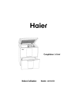 q BERN Ca RD Si BE iroir t a élateur Cong 4-54 dele LW-18 Mo ion ¡ce d'utilisatio Notic Francais Précautions de sécurité Lire l’ensemble des instructions avant d'utiliser l'appareil. Lors de l’utilisation de cet appareil, prendre toutes les mesures de sécurité, y compris les suivantes: 1) N'utiliser cet appareil que pour l'usage pour lequel il est prévu, tel qu'il est indiqué dans la notice d'utilisation. 2) Cet appareil doit être correctement installé conformément aux instructions d'installation avant l'utilisation. Consulter les instructions de mise à la terre dans la section d'Installation. 3) Ne jamais tirer sur le cordon d'alimentation pour débrancher l'appareil. Toujours saisir fermement la fiche et la retirer directement de la prise. 4) Réparer ou remplacer immédiatement tout les cordons d'alimentation qui sont endommagés d’une quelconque manière. Ne pas utiliser de cordon fissuré, abrasé ou dont la prise ou le connecteur soit endommagé. 5) Débrancher le congélateur avant de le nettoyer ou d'effectuer des réparations. Remarque: Si ce produit doit faire l’objet d'une maintenance pour quelque raison que ce soit, il est vivement recommandé de confier cette tâche à un technicien qualifié. 6) Ne pas utiliser d'appareil électriques ou d'objets tranchants pour dégivrer le congélateur. 7) Si vous n'avez plus l'usage de votre ancien congélateur, nous vous conseillons d'en retirer les portes. Ceci permet d'éviter tout danger potentiel pour les enfants. 8) Une fois le congélateur en fonctionnement, ne pas toucher les surfaces froides du compartiment congélateur en particulier avec des mains mouillées ou humides. La peau risque d'adhérer à ces surfaces extrêmement froides. 9) Ne pas recongeler les aliments qui ont été décongelés. 10)Ce produit ne doit pas être encastré, et il est conçu pour être installé de façon indépendante seulement. 11)Ne pas faire fonctionner l'appareil en présence d'émanations explosives. 12)Après l'installation de l'appareil, la prise d'alimentation doit être accessible. 13)Sile cordon d'alimentation est endommagé, ne tenter pas de le réparer par vous même car cela pourrait constituer un danger, Faites appel à un SAV ou à un technicien qualifié. 4)L'appareil ne doit être exposé dans la pluie. 5)Au cours du déménagement du congélateur , les cordons électriques de l'appareil doivent être bottelés afin d'éviter tout accident. — > Francais Aux fins de toute consultation ultérieure, Garder cette notice Danger Les enfants pourraient se retrouver coincés dans le congélateur . Veuillez retirer les portes et placer les clayettes a place de maniére ce que les enfants ne puissent pas grimper facilement à l’intérieur. Merci d'avoir fait l'acquisition de ce matériel Haier.Cette notice d'utilisation vous permettra une utilisation optimum de l'appareil. Modèle Numéro de série Veuillez prendre note des numéros de modèle et de série, qui sont inscrits sur une plaquette apposée sur l'arrière du congélateur. Date d'achat Franais Table des matieres Précautions de sécurité... 1 Noms des composants…………….….….….…….…..…..…...….………rrrerreneenmeensent 4 Installation du congélateur... nenes 5 DE ren reee rre ErrerEEEreNEEErECEEENA 5 Réglage...................eeecccecenerenenreoeeoeeeareeeseeeeensevenEneNERENEVENEC ENEE eNEEaCENECUO e 5 Circulation d'air adéquate.....................-—..er...iir0rrieme esse caserne near eee 5 Caractéristiques Électriques.……….……...…...…..…....….rrrsrreneeanerns sara sara names nan an0e 6 Caractéristiques et opération... 7 (0 1" = 0) à PAR ETE 7 Caractéristiques générales......................reeerirercirrreecceeer ere A 7 CongelatiON ...........00er —————— 7 Dégivrage et drainage......................e..eeeeíicrrereere reee RARE. 8 Congélation et conservation des aliments ee 9 Bruits de fonctionnement normals....................-...e.erereee sens rene 9 Entretien et nettoyage..................................... me 10 Nettoyage et maintenance...........................reeeeeeierrere rene 10 Coupures de courant ....................e .eeeeeícrrcerereece reee A 11 Vacances el deménagement.....................e.eeemeeercien eee 1 Dépannage.............................eeeee Deere Dre eee 12 Francais Noms des composants 1. Casier pour aliments 2. Tiroir inférieur 3. Poignée(s) 4. Roulettes(jeu de 4) 5. Touche et voyant de "supercongélation” (non illustré) 6. Thermostat (non illustré) 7. Voyant de mise sous tension (voyant vert) 8. Voyant alarme Francais Installation du coffre Désemballage 1. Retirer 'ensemble du matériel d'emballage. Ceci comprend la base en mousse ainsi que l'ensemble du matériel adhésif qui maintient les accessoires du congélateur à l'intérieur tout comme à l'extérieur. 2. Inspecter et enlever tout restant d'emballage, de scotch ou de matériaux imprimés avant de brancher le congélateur. Réglage * Ce produit ne doit pas être encastré et il est conçu pour être uniquement installé de façon indépendante. * Placer l'appareil sur un sol assez solide et résistant pour supporter le congélateur complètement chargé. * Au cours du déménagement du congélateur, ne jamais l'incliner plus de 45 degrés. Cela pourrait endommager le compresseur et le système de réfrigération. * Si l'appareil est resté incliné, il faut le faire reposer à platau moins 24 heures avant de le brancher. Circulation d’air adéquate * Pour être sûr que le congélateur fonctionne à son maximum d'efficacité, l'installer dans un endroit favorable à une bonne circulation d'air et possédant des connexions d'électricité saines. * Les indications suivantes concernent l'espace recommandé autour du congélateur: Latéralement............. (102mm) Partie supérieure....... (102mm) Arriere...........m..—... (102mm) Francais Caractéristiques électriques * Pour l'alimentat