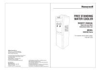 FREE STANDING WATER COOLER OWNER’S MANUAL Read and save these instructions before use MODEL HWB1052 Series For customer service please contact: 1-855-687-2223 Mitrana Group HK Ltd. Suite B, 10/F., Hong Kong Diamond Exchange Building, Nos 8-10 Duddell Street, Central, Hong Kong. For general inquires about Mitrana Group HK Ltd. or Honeywell Water Coolers please contact the toll free number: 1-855-HWHELP1 (1-855-494-3571). International rates may apply. Or visit: www.honeywellwatercoolers.com US Distributor: SCA Imports LLC 18851 NE 29th Ave., Suite 706 Aventura, Fl. 33180. Customer Service: 1-855-687-2223 © 2016 Mitrana Group HK Ltd. All rights reserved. IM02-HWB1052-W/S/B-2016-06. The Honeywell Trademark is used under license from Honeywell International Inc. Honeywell International Inc. makes no representations or warranties with respect to this product. This product is manufactured by Mitrana Group HK Ltd. DO Additionally, it has two Indicator Lights for the hot and cold water respectively, which will light up while the feature is working. Once the water has reached the minimum temperature, the Indicator Lights will turn OFF. Direct sunlight may also cause algae to grow inside your water bottle that may later cause product malfunction. DO NOT locate the unit in areas where the temperature may fall below freezing (32º F / 0º C). Allow 6 inches of space between the unit and the wall, to allow for proper air circulation to cool the compressor. CAUTION: To prevent accidental tip hazard, the water cooler must be securely anchored Please follow the instructions to load the water bottle before plugging the unit to the power source. Make sure the hot and cold water power switches are in the OFF position before plugging the unit to the power source. Do not use an adapter plug with this unit. electrician or service technician install an outlet near the appliance. Plug the unit into an exclusive properly installed grounded wall outlet. Do not cut or remove the third (ground) prong from the power cord under any circumstances. Any electrician. ATTENTION: If you do not plan to use the water heating function for more than three days, we recommend that you turn off the hot water power switch. Turn ON the hot water switch, wait a couple of minutes and turn ON the cold water switch. Allow the unit to reach the minimum cold and hot water temperatures. This will take approximately 45 minutes and the Indicator Lights will turn OFF. (Fig. 4) reach the minimum cold and hot water temperatures. This will take approximately 45 minutes and the Indicator Lights will turn OFF. (Use flat screwdriver to adjust) REFROIDISSEUR D'EAU SUR PIED MANUEL D’UTILISATION Lire et conserver ces instructions avant d’utiliser le produit MODÈLE HWB1052 Series Pour le service à la clientèle, veuillez appeler: 1-855-687-2223 Mitrana Group HK Ltd. Suite B, 10/F., Hong Kong Diamond Exchange Building, Nos 8-10 Duddell Street, Central, Hong Kong. For general inquires about Mitrana Group HK Ltd. or Honeywell Water Coolers please contact the toll free number: 1-855-HWHELP1 (1-855-494-3571). International rates may apply. Or visit: www.honeywellwatercoolers.com US Distributor: SCA Imports LLC 18851 NE 29th Ave., Suite 706 Aventura, Fl. 33180. Customer Service: 1-855-687-2223 © 2016 Mitrana Group HK Ltd. All rights reserved. IM02-HWB1052-W/S/B-2016-06. The Honeywell Trademark is used under license from Honeywell International Inc. Honeywell International Inc. makes no representations or warranties with respect to this product. This product is manufactured by Mitrana Group HK Ltd. TABLE DES MATIÈRES 1. 2. 3. 4. 5. 6. 7. 8. 9. 10. 11. 12. Avant la Première Utilisation......................................................3 Pièces et Fontions..................................................................... 4 Consignés de Sécurité Importantes........................................... 5 Boutons de Fonction..................................................................6 Lumières Indicateurs ................................................................7 Directives d'Installation............................................................. 7 Installation de Votre Refroidisseur d'Eau Pour la Première Fois. 8 Instructions de Remplacement de la Bouteille d’Eau............... 11 Réglage du Thermostat d'Eau Froide.......................................13 Entretien..................................................................................13 Caractéristiques Techniques....................................................14 Guide de Dépannage...............................................................15 1. AVANT LA PREMIÈRE UTILISATION Lisez attentivement toutes les instructions avant la mise en place et l’utilisation de l’appareil. Veuillez conserver ce manuel pour référence ultérieure. Ce manuel est conçu pour vous fournir des informations importantes nécessaires pour utiliser et entretenir votre distributeur d’eau. Si vous ne comprenez pas quelque chose ou si vous avez besoin d’aide supplémentaire, veuillez communiquer avec nous. Le nonrespect de ces instructions peut endommager et / ou altérer le fonctionnement et annuler la garantie. Conservez une preuve de la date d’achat initiale avec ce guide pour établir la période de garantie. Conservez une copie de la facture. Notez le numéro de modèle et le numéro de série qui se trouvent sur une étiquette située sur le côté du refroidisseur d’eau. Veuillez écrire ces informations ici : Date d’achat : __________________________ Numéro de modèle : HWB1052 Couleur : ( ) Blanc ( ) Argent ( ) Noir Numéro de série : ____________________________ AVERTISSEMENT: AVANT DE BRANCHER L’APPAREIL À LA SOURCE D’ALIMENTATION, LAISSEZLE EN POSITION VERTICALE PENDANT ENVIRON 24 HEURES. CELA RÉDUIRA LE RISQUE D’UN DYSFONCTIONNEMENT DU SYSTÈME DE REFROIDISSEMENT DÛ À UNE MAUVAISE MANIPULATION LORS DE LA LIVRAISON 2. PARTS AND FEATURES 3. CON
