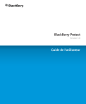 BlackBerry Protect Version: 1.0 Guide de l'utilisateur SWD-1057537-1208091521-002 Table des matières À propos de BlackBerry Protect................................................................................................................................................................................................................ 3 Configuration BlackBerry Protect............................................................................................................................................................................................................ Configurer BlackBerry Protect.................................................................................................................................................................................................................. À propos du BlackBerry ID........................................................................................................................................................................................................................ Modifier les informations de votre BlackBerry ID.................................................................................................................................................................................. Se connecter à l'application BlackBerry Protect à l'aide d'un autre BlackBerry ID........................................................................................................................... Changer de terminal à l'aide de BlackBerry Protect.............................................................................................................................................................................. Supprimer un terminal de votre compte BlackBerry Protect................................................................................................................................................................ 4 4 4 4 5 5 5 Sauvegarde des données du terminal..................................................................................................................................................................................................... À propos de la sauvegarde automatique des données.......................................................................................................................................................................... Sauvegarder les données de l'application BlackBerry Protect sur votre terminal............................................................................................................................. Sauvegarder des données à partir du site Web de BlackBerry Protect............................................................................................................................................... Modifier les options de sauvegarde automatique.................................................................................................................................................................................. Modifier les types de données sauvegardées par BlackBerry Protect................................................................................................................................................. Options de sauvegarde............................................................................................................................................................................................................................. Options relatives aux types de données à sauvegarder........................................................................................................................................................................ Désactiver les sauvegardes temporairement.......................................................................................................................................................................................... Résolution des problèmes......................................................................................................................................................................................................................... 6 6 6 6 7 7 7 8 9 9 Suivi de l'emplacement de votre terminal............................................................................................................................................................................................... À propos de la localisation........................................................................................................................................................................................................................ Activer la localisation................................................................................................................................................................................................................................. 10 10 10 Recherche et protection d'un terminal perdu......................................................................................................................................................................................... Afficher l'emplacement de votre terminal.............................................................................................................................................................................................. Faire sonner votre terminal perdu............................................................................................................................................................................................................ Verrouiller votre terminal perdu............................................................................................................................................................................................................... Afficher un message sur votre terminal perdu...........................................................