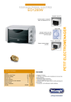 Vous trouverez ci-dessous de brèves informations sur EO1200W. Ce four électrique offre une capacité de 12,5 litres, trois fonctions de cuisson (convection, grill, résistance du bas), un thermostat réglable de 60 à 230°C et une minuterie de 120 minutes avec signal sonore. Il est facile à nettoyer grâce à son plateau ramasse-miettes amovible et accepte les plats d’un diamètre de 31cm.