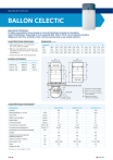 ballons de stockage Ballon Celectic Ballon de stockage. Ce ballon accumulateur d’eau chaude se raccorde facilement à toutes les chaudières mixtes Chaffoteaux. Disponible en trois capacités (80, 100 et 150 l), c’est la solution évolutive idéale pour faire face, à moindre coût, à de nouveaux besoins en eau chaude sanitaire. caractéristiques principales >> Débit spécifique de 17 à 20,9 l/min > (∆T 30°C) selon le modèle. >> Ballon au sol, également conçu pour une installation murale (se reporter à la notice d’installation). >> Groupe de sécurité vendu séparément. dimensions (en mm) capacité 80 l 100 l 150 l Modèles disponibles Référence Prix ht Celectic 80 685525 931 € Celectic 100 686525 988 € Celectic 150 688525 1 125 € a b 844 819 540 200 447 330 440 c d e 987 962 540 300 590 330 440 74 558 65 100 105 290 1270 1245 540 500 873 330 440 74 558 65 100 105 373 A1 Position au sol f g h i j 74 558 65 k l A2 Position au mur M F A G C G C B D E D F Douilles à souder Ø 18/20 H I L J K J L 1. Arrivée eau froide sanitaire 2. Départ eau vers chaudière 3. Retour eau chaude sanitaire de la chaudière 4. Départ eau chaude sanitaire vers puisage M 3/4” G 1 2 3 4 caractéristiques techniques (1) désignation Capacité Débit spécifique sur 10 min Celectic 80 l Celectic 100 l Celectic 150 l l 80 100 150 l/min 17 17,6 20,9 Départ ECS pouces ¾” ¾” ¾” Départ vers chaudière pouces ¾” ¾” ¾” Retour ballon pouces ¾” ¾” ¾” Arrivée eau froide pouces ¾” ¾” ¾” Consommation d'entretien kWh /24h 1,58 1,63 1,94 Constante de refroidissement W/24h °C 0,493 0,408 0,323 bar 7 7 7 PU PU PU 105 105 105 Pression de service maximum sanitaire Isolation Diamètre de la bride supérieure (intérieur/extérieur) Durée de chauffe 15 à 60°C min 25 30 40 Dimensions H x Ø mm 844 x 540 987 x 540 1270 x 540 Poids kg 33 38 54 1 1 1 Nombre de colis (1) mm Données pour une chaudière de 23 kW 106 m 100 105 247 ">