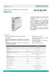 Modulateur COFDM avec entrée ASI Le SIG7121 module dans la norme DVB-T (modulation COFDM) un signal reçu sur l’entrée ASI. Il est principalement utilisé en association avec le convertisseur à 4 entrées Audio /Vidéo réf : SIG7404. Il est possible d’utiliser de 1 à 3 modulateurs par récepteur. Ils seront connectés via le fond de panier du rack 19 ‘’ Il est également possible d’utiliser l’entrée TS du fond de panier. Des modulateurs COFDM additionnels peuvent utiliser la même entrée ASI via le fond de panier. Points clés - Modulateur COFDM avec entrée ASI en face avant - Conforme à la norme HD. - LCN incorporé - - Possibilité d’augmenter jusqu’à 3 modulateurs en ajoutant (2x SIG7120 avec 1xSIG7121) pour bénéficier de la même entrée ASI/TS. Connecteur F pour couplage et sortie RF pour le signal modulé. - Entrée additionnelle pour le transport du flux en fond de panier. - Solution modulaire évolutive. - Configuration et visualisation à distance (via contrôleur Host réf : SIG7905 et soft FHM). SIG7121 Code ENTRÉE ASI Connecteur ASI Débit max. FOND DE PANIER ENTREE TS Connecteur Type Débit max. SIGNAL DE SORTIE Connecteur de sortie Fréquence de sortie Pas de réglage en fréquence Niveau de sortie max Plage de réglage Perte de passage Nombre de porteuse Modulation FEC Intervale de garde Spectre 283953 Mbit/s BNC, 75 Ohm 216 Mbit/s 48 broches dans le fond de panier Parallèle 100 MHz KHz dBuV dB dB Type F femelle 108 – 862 10 85 0 ÷ 15 < 1.5 2K, 8K QPSK, 16QAM, 64QAM 1/2, 2/3, 3/4, 5/6, 7/8 1/4, 1/8,1/16, 1/32 Normal/Inversé MER PARAMETRES GENERAUX Tension secteur Consommation Dimensions ( version rack) Température de fonctionnement Fracarro code 283953 Référence SIG7121 dB 38 V W mm °C 220÷240V~, 50-60 Hz 11 7e × 3u × 24 -10 ÷ +45 Emballage Quantité Dimensions Poids unitaire Poids total Unitaire pièce 1 mm 74 × 169 × 280 kg 0,8 kg 0,8 ">