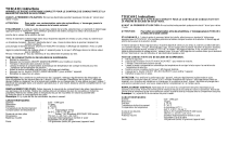 TDSCAN1 Instructions APPAREIL DE POCHE A AFFICHAGE COMPLETT POUR LE CONTROLE DE CONDUCTIVITE ET LA MESURE DE SOLIDES EN SOLUTIONS. AVANT LA PREMIERE UTILISATION: Rincez les électrodes pendant quelques minutes à l’alcool pour retirer l’huile. ATTENTION: Pour eviter une contamination entre des echantillons, n’immergez jamais le TDSCAN1 au-dessus de la bande coloree! ETALONNAGE: A l’aide du guide du panneau latéral de la boîte, sélectionnez un standard d’étalonnage approprié pour le TDSCAN1. Une meilleure précision est obtenu lorsque la valeur de la solution d’ étalonnage est proche de la valuer de la solution de test. TDSCAN1 Instructions APPAREIL DE POCHE A AFFICHAGE COMPLETT POUR LE CONTROLE DE CONDUCTIVITE ET LA MESURE DE SOLIDES EN SOLUTIONS. AVANT LA PREMIERE UTILISATION: Rincez les électrodes pendant quelques minutes à l’alcool pour retirer l’huile. ATTENTION: Pour eviter une contamination entre des echantillons, n’immergez jamais le TDSCAN1 au-dessus de la bande coloree! ETALONNAGE: A l’aide du guide du panneau latéral de la boîte, sélectionnez un standard d’étalonnage approprié pour le TDSCAN1. Une meilleure précision est obtenu lorsque la valeur de la solution d’étalonnage est proche de la valuer de la solution de test. Versez le standard d’étalonnage dans deux récipients séparés et versez un peu d’eau du robinet oud déionisée dans un troisième récipient. Rincez l’électrode dans l’eau, rincez-la dans dans le premier récipient de solution standard, puis plongez la dansle second, allumez le TDSCAN1 et laissez l’affichage se stabiliser. Avec un petit tourne-vis, réglez le potentiomètre de réglage situé a l’appareil jusqu’à ce que l’affichage donne la même valeur que le standard. Rincez l’électrode à l’eau du robinetou àl’eau déionisée et passez au test. Versez le standard d’étalonnage dans deux récipients séparés et versez un peu d’ eau du robinet oud déionisée dans un troisième récipient. Rincez l’électrode dans l’eau, rincez-la dans dans le premier récipient de solution standard, puis plongez la dansle second, allumez le TDSCAN1 et laissez l’affichage se stabiliser. Avec un petit tourne-vis, réglez le potentiomètre de réglage situé a l’appareil jusqu’à ce que l’affichage donne la même valeur que le standard. Rincez l’électrode à l’eau du robinetou àl’eau déionisée et passez au test. TEST DE CONDUCTIVITE OU DE SOLIDES EN SUSPENSION. • Retirez le capuchon. • Appuyez sur le bouton ON/OFF (MARCHE/ARRET) pour mettre en marche. • Trempez l’électrode dans solution de test. • Laissez le temps à compensation automatique de température de corriger la lecture pour les variations de température de solution. • Notez la lecture complète une fois que l’affichage est stabilisé. • Appuyez sur le bouton ON/OFF (MARCHE/ARRET) pour arrêtter l’appereil. • Remettez le capuchon en place. TEST DE CONDUCTIVITE OU DE SOLIDES EN SUSPENSION. • Retirez le capuchon. • Appuyez sur le bouton ON/OFF (MARCHE/ARRET) pour mettre en marche. • Trempez l’électrode dans solution de test. • Laissez le temps à compensation automatique de température de corriger la lecture pour les variations de température de solution. • Notez la lecture complète une fois que l’affichage est stabilisé. • Appuyez sur le bouton ON/OFF (MARCHE/ARRET) pour arrêtter l’appereil. • Remettez le capuchon en place. ENTRETIEN: Pour améliorer la performance de l’appareil, nettoyez régulièrement les électrodes en acier inoxydable en les rinçant dans de l, alcool 10 à 15 minutes. Remplacez les 4 piles si l’affichage devient faible ou disparait, ou si la lecture est instable ou ne change pas. Si une dérive survient lorque l’ électrode est plangée dans une solution pendant plus d’une heure, laisez-la sécher complètement à l’air temps à autre. ENTRETIEN: Pour améliorer la performance de l’appareil, nettoyez régulièrement les électrodes en acier inoxydable en les rinçant dans de l, alcool 10 à 15 minutes. Remplacez les 4 piles si l’affichage devient faible ou disparait, ou si la lecture est instable ou ne change pas. Si une dérive survient lorque l’électrode est plangée dans une solution pendant plus d’une heure, laisez-la sécher complètement à l’air temps à autre. REMPLACEMENT DES PILES: Faites basculer le couvercle du compartiment des piles (reportezvous aux panneaux de la boîte). Retirez les vieilles piles et remplacez les par de nouvelles en notant la polaritîte). Retirez les vieilles piles et remplacez les par de nouvelles en notant la polarité telle qu’indiquée dans le compartiment des piles. Remarque: il n’y a pas de fils de connecteur de piles à casser! CARACTERISTIQUERS: Gamme Résolution Précision Température de fonctionnement Compensation de température : : : : Durée de vie des piles Dimensions Matériau mouillé : : Poids : 0.00 – 1990 ppm 10 ppm + 2% PE 0 – 50 °C : Automatique (ATC) de 0°C_à 50°C, 2% par °C : 4piles, 1,4V Eveready EP675HP/ 200 heures 150 mm L x 42 mm l x 24 mm h polyesterr thermoplastique renforé d’acier Inoxydable 316 et de verre 128 grammes (boîte) 92 grammes (appareil seul) REMPLACEMENT DES PILES: Faites basculer le couvercle du compartiment des piles (reportezvous aux panneaux de la boîte). Retirez les vieilles piles et remplacez les par de nouvelles en notant la polaritîte). Retirez les vieilles piles et remplacez les par de nouvelles en notant la polarité telle qu’ indiquée dans le compartiment des piles. Remarque: il n’ y a pas de fils de connecteur de piles à casser! CARACTERISTIQUERS: Gamme Résolution Précision Température de fonctionnement Compensation de température : : : : : Durée de vie des piles Dimensions Matériau mouillé : : : Poids : 0.00 –1990 ppm 10 ppm + 2% PE 0 –50 °C Automatique (ATC) de 0°C_à 50°C, 2% par °C 4piles, 1,4V Eveready E