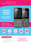 ECHO FIRST / FIRST PLUS Simple, pratique, discret. Écran couleur 2,4’’ Écran couleur 1,77’’ Des arguments, deux tailles. LIVRÉ EN BLISTER LIBRE TOUT OPÉRATEUR Dual Sim Bluetooth Lecteur mp3 ECHO FIRST / FIRST PLUS • Design sobre et élégant. • Fonctionnalités simples et pratiques. • Fabrication de qualité pour une fiabilité optimale. • Autonomie longue durée. Radio FM App. photo vidéo + flash ECHO Prix imbattable, packaging malin et fiabilité éprouvée, Echo est la référence pour des mobiles simples et efficaces. ECHO FIRST / FIRST PLUS EAN FIRST NOIR : 3662515796082 EAN FIRST BLANC : 3662515963330 EAN FIRST BLEU: 3662515963323 EAN FIRST PLUS NOIR : 3662515963194 ÉCRAN Écran couleur Taille Résolution Clavier rétro éclairé ff ff ff ff FIRST TFT 1,77 pouces 128x160 oui GESTION DES APPELS Capacité du répertoire Mode de recherche par nom Mode Notes Présentation du numéro Double appel Mains-libres ff ff ff ff ff ff 500 oui oui oui oui oui EMAIL & MESSAGERIE SMS/MMS ff oui PHOTO & VIDÉO Appareil photo Résolution Répertoire d’image Lecteur audio Enregistreur audio Lecteur vidéo Enregistreur vidéo ff ff ff ff ff ff ff FIRST Appareil photo + flash 0,08 Mp oui MP3/Midi Wav AVI/3GP/MP4 Wav ff ff ff ff ff ff ff FIRST PLUS Appareil photo + Flash 1,3 Mp oui MP3/Midi Wav AVI/3GP/MP4 Wav ff ff ff ff ff FIRST 3,5mm Jack oui oui oui oui ff ff ff ff ff FIRST PLUS 3,5mm Jack oui oui oui oui ff ff ff ff ff oui oui oui oui oui ff ff ff ff ff oui oui oui oui oui ff ff ff ff ff ff ff ff ff ff ff FIRST Standard RAM 64BIT ROM 32MBIT Jusqu’à 8GB 350 6 600mAh Li-ion 5V/1000mA oui 850/900/1800/1900 GPRS Bluetooth 2.0 ® ff ff ff ff ff ff ff ff ff ff ff FIRST PLUS Standard RAM 64BIT ROM 32MBIT Jusqu’à 8GB 350 6 600mAh Li-ion 5V/1000mA oui 850/900/1800/1900 GPRS Bluetooth 2.0 ® MULTIMÉDIA & DIVERTISSEMENT Prise audio Calendrier / Rappels anniv. Radio FM Alarme / Réveil Calculatrice SONS & SIGNAUX Sonneries polyphoniques Vibreur Coupure de la sonnerie Coupure du micro Haut parleur 0,8 watts MÉMOIRE & CONNECTIVITÉS Double Sim Mémoire Compatible TF Card Autonomie en veille (h) Temps de conversation (h) Batterie Adaptateur AC V/mA Câble Micro USB Bande GSM GPRS Bluetooth 2.0 ® ff ff ff ff FIRST PLUS TFT 2,4 pouces 240x320 oui ff ff ff ff ff ff 500 oui oui oui oui oui FIRST FIRST PLUS FIRST FIRST PLUS ff oui FIRST PLUS FIRST FIRST PLUS FIRST INTERNET Navigateur Web ff oui INFOS DIVERSES Couleur disponible Dimensions Poids Taux de DAS Garantie ff ff ff ff ff FIRST Noir 111,8x47,5x11,4mm 70g 0,619 W/Kg 1 an Contenu : Téléphone - Chargeur - Kit piéton - Guide d’utilisation ff oui ff ff ff ff ff FIRST PLUS Noir 118,8x50,5x11,9mm 80g 0,551W/kg 1 an ">