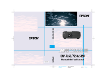 F Printed in Japan 75417725 75417725 DIC214 cover-F 75417725 BK cover-F French French Informations importantes Veuillez prendre connaissance des informations importantes ci-dessous au sujet de votre projecteur. Sécurité Avertissement: ne regardez jamais à travers l’objectif du projecteur lorsque la lampe est allumée; la lumière intense peut causer des lésions oculaires. Ne jamais permettre aux enfants de regarder à travers l’objectif lorsque la lampe est allumée. Avertissement: n’ouvrez jamais aucun couvercle du projecteur, sauf celui de la lampe ou des filtres. Des tensions électriques dangereuses présentes à l’intérieur du projecteur peuvent occasionner des lésions graves. Sauf dans les cas explicitement visés dans le présent manuel d’utilisation, n’essayez jamais de réparer vous-même ce matériel. Adressezvous toujours à un technicien qualifié. Avertissement: ne laissez pas les sachets en plastique du projecteur, des accessoires et des options à portée des enfants. Ces derniers pourraient y mettre la tête et mourir étouffés. Soyez particulièrement vigilants avec les enfants en bas âge. Attention: Lors du remplacement de la lampe, ne touchez jamais la nouvelle ampoule des doigts. Les traces invisibles laissées par les doigts peuvent en réduire la durée de vie. Utilisez un chiffon ou des gants pour manipuler la nouvelle ampoule. 7541772 Cover-B REV.2 BK French 735̲725̲535̲F̲quick 1 ページ 2001年2月23日 金曜日 午後2時15分 EMP-7350/7250/5350 DEMARRAGE RAPIDE Témoin de fonctionnement Panneau de commande Haut-parleur Récepteur infra-rouge Bague de zoom Bague de mise au point Haut-parleur Bouton de déverrouillage du pied Power Computer A/Vmute Resize Button Function Power Active et désactive la projection. Aide Affiche le menu d’aide. Ordinateur Commute entre Ordinateur 1 et Ordinateur 2. (Lorsque le commutateur Ordinateur 2/BNC à l’arrière du projecteur est réglé sur BNC, la source se règle sur BNC.) A/V mute Active/désactive la sortie audio/vidéo du projecteur. Pour activer la sortie audio/vidéo, réappuyer sur la touche A/V mute ou appuyer sur la touche Esc ou sur la touche Shift + Volume. Resize Change la résolution à l’affichage Window ou de l’affichage Resize. Video Commute sur la source d’entrée vidéo. Appuyer une fois sur le bouton pour passer à Vidéo et appuyer deux fois pour passer à S-Video. Help Video Esc Menu Sync Tracking Tracking Sync Keystone Shift Pied avant Volume Menu Affiche ou masque le menu. Esc Arrête la fonction actuelle. Si vous appuyez sur la touche Esc lorsqu’un menu ou l’aide est affiché, le menu ou l'écran précédent sera rétabli. Enter Sélectionne une option dans le menu. Si vous appuyez sur la touche Enter lorsqu’un menu ou l’aide est affiché, le menu ou l'écran suivant sera affiché. Si vous appuyez sur la touche Enter quand aucun menu d'aide n'est affiché, vous pouvez obtenir une image d'ordinateur optimale. Synchro +/- Synchronise le signal graphique de l’ordinateur. Utiliser ces touches pour régler l’ensemble de l’image si elle est floue ou striée ou pour sélectionner les articles du menu dans les opérations de menu. panneau de commande Fréquence +/- Fait correspondre l’horloge interne du projecteur avec différents signaux graphiques de l’ordinateur (réglage de la fréquence). Utiliser ces touches pour régler une image présentant des traits verticaux flous ou pour modifier les réglages numériques dans les opérations de menu. Shift Une pression simultanée sur la touche Shift ou de distorsion trapézoïdale augmente ou réduit le volume du son. Distorsion Sert à ajuster la distorsion trapézoïdale pour obtenir une trapézoïdale +/- image normale. EMP-7350/7250/5350 DEMARRAGE RAPIDE Power Freeze A/V Mute R/C ON OFF E-Zoom 3 Adresses du service après-vente 4 2 1 5 Enter Esc télécommande Touche Fonction Gel Fixe l’image de l’ordinateur ou l’image vidéo sur l’ordinateur. A/V Mute Active/désactive la sortie audio/vidéo du projecteur. Pour activer la sortie audio/vidéo, soit réappuyer sur la touche A/V mute soit appuyer sur la touche Esc. E-Zoom Une pression sur le côté droit de la touche agrandit l’image et une pression sur le côté gauche de la touche réduit l’image. Pour afficher une partie de l’image agrandie qui est hors de l'écran, appuyer sur la touche Enter pour déplacer l’image. Interrupteur Power Active et désactive la projection. Touches Effet Servent à afficher des effets spéciaux qui ont été assignés dans le menu Effet ou à l’aide du logiciel ELP Link IV disponible en option. Touche Enter Utiliser la touche du pointeur pour naviguer entre les menus ou utiliser la télécommande comme pointeur de souris lorsque le projecteur est branché à l’ordinateur par le biais du câble principal et par le câble de la souris. Vous pouvez également sélectionner une option du menu en appuyant au centre de cette touche (Enter). Si vous appuyez sur la touche Esc lorsqu’un menu ou l’aide est affiché, le menu ou l'écran antérieur sera affiché. Lorsque la source d’image est l’ordinateur, la touche Enter fonctionne comme le bouton gauche d’une souris. Touche d’éclairage Allume toutes les touches de la télécommande. La lampe reste allumée pendant 10 secondes. Esc Arrête la fonction actuelle. Si vous appuyez sur la touche Esc lorsqu’un menu ou l’aide est affiché, le menu ou l'écran antérieur sera affiché. Lorsque la source d’image est un ordinateur, la touche Esc fonctionne comme le bouton droit d’une souris. Menu Affiche ou masque le menu. Aide Affiche le menu d’aide. Ordinateur 1 Commute sur l’image d’Ordinateur 1. Comp2/BNC Commute sur l’image d’Ordinateur 2/BNC. S-Video Commute sur l’image S-vidéo. Vidéo Commute sur l’image vidéo. Auto Permet d’obtenir la meilleure l’image possible de l’ordinateur. Resize (redimensionner) Commute entre l'affich