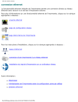 table des matières ethernet connexion ethernet La fonctionnalité ethernet intégrée de l'imprimante permet une connexion directe au réseau ethernet sans recourir à un serveur d'impression externe. Pour plus d'informations sur une fonctionnalité ethernet de l'imprimante, cliquez sur la rubrique appropriée ci-dessous : voyants ethernet page de configuration réseau page Web interne de l’imprimante Pour les instructions d'installation, cliquez sur la rubrique appropriée ci-dessous : bases d'ethernet connexion d'une imprimante à un réseau ethernet installation du logiciel d'impression sur un ordinateur réseau Autre information : ● dépannage ● réinitialisation de l'imprimante selon la configuration usine par défaut ● glossaire ethernet file:///C|/fra/ug_ethernet_intro_fs.html [12/17/2002 12:54:33 PM] voyants ethernet voyants ethernet Les voyants ethernet de l'imprimante indiquent l'état de la connexion ethernet de l'imprimante. 1. voyant de connexion 2. voyant d'activité voyant de connexion Le voyant de connexion ne clignote pas lorsque l'imprimante est reliée au réseau ethernet et est sous tension. voyant de connexion... l'imprimante... est reliée à un réseau ethernet et est sous tension n'est pas reliée à un réseau ethernet - ou - n'est pas sous tension voyant d'activité Le voyant d'activité clignote lorsque l'imprimante reçoit ou transmet des données via la connexion ethernet. file:///C|/fra/ug_ethernet_lights_fs.html (1 of 2) [12/17/2002 12:54:34 PM] voyants ethernet voyant d'activité... l'imprimante... reçoit ou transmet des données via la connexion ethernet ne reçoit pas ou ne transmet pas des données via la connexion ethernet file:///C|/fra/ug_ethernet_lights_fs.html (2 of 2) [12/17/2002 12:54:34 PM] page de configuration réseau page de configuration réseau La page de configuration réseau de l'imprimante fournit des informations utiles concernant la connexion ethernet de l'imprimante. impression d'une page de configuration réseau Pour imprimer une page de configuration réseau, appuyez sur le bouton Annuler ( X ) de l'imprimante lorsque l'imprimante est sous/hors tension. Si l'imprimante vient d'être reliée au réseau, patientez quelques minutes avant d'imprimer la page de configuration réseau, afin de permettre à l'imprimante d'obtenir des paramètres réseau valides. Les paramètres obtenus sont valides si l'Status correspond à Succeeded. rubriques de la page de configuration réseau La page de configuration réseau de l'imprimante comporte quatre rubriques. file:///C|/fra/ug_ethernet_network_page_fs.html (1 of 4) [12/17/2002 12:54:35 PM] page de configuration réseau 1. Général 2. TCP/IP 3. Statistiques réseau 4. Configuration du port general 1. Network Name : Nom personnalisé de l'imprimante. 2. URL : Adresse IP de la page Web interne de l'imprimante. 3. MAC Address : Adresse MAC de l'imprimante (apparaît également sur l'étiquette se trouvant à l’arrière de l'imprimante). 4. Serial number : Numéro de série de l'imprimante. TCP/IP file:///C|/fra/ug_ethernet_network_page_fs.html (2 of 4) [12/17/2002 12:54:35 PM] page de configuration réseau 5. Status : État du réseau de l'imprimante : Succeeded, Failed ou In Progress. 6. Configured by : Façon dont l'imprimante obtient son adresse IP : DHCP, AutoIP, Manual, Unconfigured. 7. IP Adress : Adresse IP de l'imprimante. 8. Subnet Mask : Subnet Mask de l'imprimante. 9. Gateway : Adresse de gateway de l'imprimante. statistiques réseau file:///C|/fra/ug_ethernet_network_page_fs.html (3 of 4) [12/17/2002 12:54:35 PM] page de configuration réseau 10. Total Packets Received : Nombre de paquets reçus sans erreur. 14. Total Packets Transmitted : Nombre de paquets transmis sans erreur. 11. Unicast Packets reçus : Nombre de paquets adressés spécifiquement à l'imprimante. 15. Unicast Packets Transmitted : Nombre de paquets adressés à un périphérique spécifique du réseau qui ont été transmis. 12. Broadcast Packets Received : Nombre de paquets adressés à tous les périphériques du réseau qui ont été reçus. 13. Bad Packets Received : Nombre de paquets reçus sans erreur. 16. Broadcast Packets Transmitted : Nombre de paquets adressés à tous les périphériques du réseau qui ont été reçus. 17. Transmission Error Packets : Nombre de paquets non transmis en raison d'erreurs configuration du port 18. Port configuration : Type de port ethernet. Ce paramètre est déterminé par le réseau auquel l'imprimante est connectée ; il n'est pas configurable à partir de l'imprimante. ● ● ● ● 10T FullDplx : L'imprimante peut simultanément transmettre et recevoir des données (duplex intégral) à 10 Mb/s (mégabits par seconde). 10T HalfDplx : L'imprimante peut transmettre et recevoir des données à 10 Mb/s, mais doit procéder séparément à la transmission et à la réception (semiduplex). 100TX FullDplx : L'imprimante peut simultanément transmettre et recevoir des données (duplex intégral) à 100 Mb/s. 100TX HalfDplx : L'imprimante peut transmettre et recevoir des données à 100 Mb/s, mais doit procéder séparément à la transmission et à la réception (semiduplex). file:///C|/fra/ug_ethernet_network_page_fs.html (4 of 4) [12/17/2002 12:54:35 PM] glossaire ethernet glossaire ethernet 10/100 Base-T : Terme technique désignant « ethernet ». 10/100 fait référence à la vitesse à laquelle fonctionne le réseau ethernet. 10 indique 10 mégabits par seconde (Mb/s) pour un réseau Ethernet normal, et 100 indique 100 Mb/s pour un réseau Ethernet rapide. AutoIP : Processus par lequel le périphérique d'un réseau s'assigne automatiquement des adresses IP. Paquet de radiodiffusion : Paquet transmis par le périphérique d'un réseau à tous les autres périphériques du réseau. DHCP (Dynamic Host Configuration Protocol) : Protocole utilisé pour assigner automatiquement une adresse IP à chaque périphérique d'un réseau. Ethernet : Forme populaire de ré