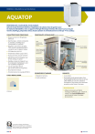 pompes à chaleur eau glycolée/eau Aquatop Performante, silencieuse, écologique. Grâce à ses performances élevées, l’Aquatop est la solution haut de gamme pour les maisons individuelles. Avec un apport d’énergie électrique minimal, elle assure tout au long de l’année chauffage, préparation d’eau chaude sanitaire et rafraîchissement en été par “free cooling”. Caractéristiques principales >> Niveau sonore d’un réfrigérateur silencieux. >> Gamme large : versions compactes ou standard, chauffage seul, monophasée ou triphasée. >> Régulation permettant de gérer 2 à 3 circuits, la production d’ECS y compris avec un appoint solaire. >> COP élevé de 4,4 à 6,0. >> Température départ jusqu’à 55°C. >> Production d’eau chaude sanitaire. >> Rafraîchissement écologique avec le free cooling, en option. >> Modèles compacts intégrant tous les composants hydrauliques, pour une installation plug&work. >> Circuit frigorifique fermé (pas d’intervention de frigoriste). >> Encombrement réduit. >> Fonctionnement en cascade (RVS61). type d’installation Composants hydrauliques (version compacte) Vase d’expansion circuit source froide Pompe de circulation source froide Vase d’expansion circuit chauffage (1 à 2 selon puissance) Manomètres circuit source froide et circuit chauffage Pompe de circulation chauffage Cartouche électrique chauffante Fournitures standard Garantie >> Régulation Siemens. >> Sonde extérieure. >> 2 ans pièces. >> Prolongation de la garantie pièce d’une année supplémentaire si la mise en service a été réalisée par une de nos Stations Techniques et sous réserve d’un entretien annuel par cette Station Technique. Avertissement >> Mise en service par une Station Technique Chaffoteaux, prix : 400 € HT. Visitez le site www.chaffoteaux.fr pour trouver la Station Technique la plus proche. Intérieure Les pompes à chaleur Chaffoteaux Aérotop sont certifiées par le prestigieux label de qualité EHPA valable en Allemagne, en Suisse, en Suède et en Autriche. 228 Installation intérieure Application chauffage + ecs Puissance 5,4-43,7 kW Technologie eau glycolée/Eau aquatop Modèles compacts (chauffage seul, rafraîchissement possible avec option free cooling) La version compacte est conçue pour être raccordée directement sur un circuit plancher chauffant. Elle est ainsi équipée de série d’une résistance électrique d’appoint, d’un vase d’expansion et d’un circulateur pour les circuits chauffage et captage. modèles disponibles Version compacte >> Pompe de circulation (circuit de chauffage et captage). >> Vases d’expansion (circuit de chauffage et captage). >> Résistance électrique 2/4/6 kW. >> Soupape de sécurité. >> Manomètres. modèle puissance cop tension Référence Prix ht T05C 5,4 kW T06CX 6,5 kW 4,5 Tri 3640057 7 784 € 4,3 mono 3640082 T08CX 7 887 € 8,2 kW 4,4 mono 3640083 8 146 € T10CX 9,6 kW 4,5 mono 3640084 8 510 € T12CX 12 kW 4,3 mono 3720175 9 651 € T14C 14,4 kW 4,3 Tri 3640062 10 325 € T19C 18,5 kW 4,6 Tri 3640064 11 484 € exemple de configuration Aquatop compacte : 1 circuit de chauffage + ECS Circuit plancher chauffant Sonde extérieure Aquatop Compacte M Vanne 3 voies d’inversion Sonde Ballon ECS Groupe de sécurité Résistance Vase d’expansion (facultatif) kits Disponibles MOdèle T05, T06, T08, T10 Référence Prix HT Aquatop T05C 3640057 7 784 € Aquatop T06CX 3640082 7 887 € Aquatop T08CX 3640083 8 146 € Aquatop T10CX 3640084 8 510 € 3640286 2 403 € Pompe à chaleur MOdèle T12, T14 Référence Prix HT Pompe à chaleur MOdèle T19 Aquatop T12CX 3720175 9 651 € Aquatop T19C Aquatop T14C 3640062 10 325 € ECS 3640287 2 593 € Kit ECS PAC 500 l ECS Kit ECS PAC 400 l Référence Prix HT 3640064 11 484 € 3640288 2 974 € Pompe à chaleur ECS Kit ECS PAC 300 l 229 pompes à chaleur Retrouvez tous les schémas hydrauliques et les préconisations dans la Notice pour l’Étude, disponible auprès de votre commercial Chaffoteaux ou téléchargeable sur le site www.chaffoteaux.fr. Pour le détail des accessoires nécessaires pour la réalisation de ce schéma, se référer à la Notice pour l’Étude. Chaffoteaux décline toute responsabilité pour les installations ne respectant pas les configurations d’installation préconisées dans la Notice pour l’Étude. aquatop caractéristiques techniques T05 C T06 CX T08 CX T10 CX T12 CX T14 C T19 C Modèles compacts Données techniques pour captage dans le sol (B0W35) Puissance calorifique 10/35°C (1) kW COP (1) T° eau (glycolée)/T° départ chauffage 5,4 6,5 8,2 9,6 12 14,4 18,5 4,5 4,3 4,4 4,5 4,3 4,3 4,6 Puissance frigorifique kW 4,2 5,0 6,3 7,4 9,2 11,1 14,5 Débit primaire (3,0 K Δt pour B0/W35) l/h 1 326 1 584 1 992 2 352 2 928 3 516 4 625 Données techniques pour captage dans une nappe/rivière (W10W35) : Echangeur intermédiaire obligatoire Puissance calorifique 10/35°C (2) (2) kW 7,1 5,9 5,8 5,9 6,0 6,0 5,5 5,8 Puissance frigorifique kW 5,9 7,2 9,1 10,8 13,3 15,6 20,3 Débit primaire (3,0 K Δt à W10/W35) l/h 1 863 2 281 2 877 3 433 4 233 4 941 6 475 kW - - - - - - - - - - - - - - kg 1,4 1,7 1,85 2,0 2,2 2,4 2,7 Tri mono mono mono mono Tri Tri kW 1,2 1,5 1,8 2,1 2,8 3,3 4 Courant nominal A 4,2 14,8 17,3 23,1 24 11 13,5 Courant d'appel A 12,5 45 45 45 45 27,5 33,8 COP 8,7 11,0 12,9 15,9 T° eau /T° départ chauffage 19,1 24,5 mode froid Puissance de refroidissement EER fluide frigorigène R407C Quantité données électriques Alimentation Puissance absorbée dimensions - poids (versions standard) Largeur mm 670 670 670 670 670 670 670 Profondeur mm 960 960 960 960 960 960 960 Hauteur mm 1 050 1 050 1 050 1 050 1 050 1 050 1 050 Poids kg 189 192 193 194 196 203 209 dB(A) 25 25 25 25 27 31 34 niveau sonore - installation intérieure à5m 230 ">