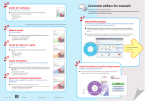 Comment utiliser les manuels Guide de l’utilisateur Présentation des guides fournis avec la machine. Ce guide doit être lu en premier. Les guides existent au format papier et dans une version électronique accessible depuis un ordinateur. Ils ont ● Il présente dans le détail les spécifications de la machine, ainsi que les précautions à prendre pour la manipuler. pour objectif de faciliter l’utilisation de la machine. • Mentions légales • Consignes de sécurité • Spécifications , etc. Manuel électronique Les informations permettant de maîtriser le fonctionnement de la machine ont été rassemblées dans le présent CD-ROM. * Les guides présentés ci-dessous sont fournis avec le Manuel électronique sous forme de fichiers PDF. ● Il présente l’utilisation des fonctions, notamment la copie et l’envoi, ainsi que la définition des réglages, et décrit les équipements en option susceptibles d’améliorer la productivité des tâches. Mise en route Actions préalables ● Présentation de la définition des réglages après l’installation de la machine. ● Les exemples d’opérations fournis aident à effectuer les procédures, telles que la constitution de brochures à partir des copies réalisées ou la prévention des copies non autorisées. Mise en route • Réglages communs aux protocoles réseau • Avant d’utiliser les fonctions de télécopie • Avant d’imprimer depuis l’ordinateur , etc. Guide de référence rapide Fonctions de la machine Pour plus d’informations, ● Présentation des opérations de base de la machine et de la manière de l’utiliser. voir au verso. Guide de référence rapide • Panneau de commande • Réalisation d’une copie • Envoi de télécopie , etc. Conserver ce guide à proximité de la machine afin de pouvoir s'y référer facilement dans le futur. Guide d’entretien Chargement du papier et remplacement des cartouches de toner Guide d'entretien ● Présentation des opérations d’entretien courantes à effectuer sur la machine et des mesures à prendre pour résoudre les problèmes éventuels (bourrages papier, etc.). • Approvisionnement en papier • Remplacement de la cartouche de toner • Elimination des bourrages de papier , etc. Guide d’installation du pilote d’imprimante Installation du pilote d’imprimante ● Présentation de la procédure d’installation des pilotes nécessaires pour imprimer depuis un PC ou pour envoyer des télécopies. Prière de lire ce guide avant d'utiliser ce produit. Après avoir terminé la lecture de ce guide, le ranger dans un endroit sûr afin de pouvoir s'y référer facilement dans le futur. Questions fréquemment posées Définition des réglages Est-il possible de résoudre certains problèmes ? Questions fréquemment posées ● Réponses aux questions les plus fréquemment posées. • Je voudrais effectuer des copies mais c’est impossible, car la machine est en train d’imprimer. • Modification des réglages du pilote d’imprimante • Impossible de retirer la cartouche de toner. , etc. FT5-2829 (000) XXXXXXXXX ©CANON INC. 2010 Conserver ce guide à proximité de la machine afin de pouvoir s'y référer facilement dans le futur. PRINTED IN CHINA • • • • UFR II PCL PS FAX Recherche à l’aide du Manuel électronique Les instructions d’utilisation de la machine sont fournies, sauf pour certains équipements en option. Recherche à l’aide de la Table des matières Recherche d’un terme Il est possible de chercher la définition d’un terme inconnu. Les recherches peuvent être effectuées à l’aide du contenu général du Manuel électronique. Recherche avec un mot clé Il est possible de faire une recherche rapide, parmi de nombreuses informations dans lesquelles figure le mot clé. Recherche à l’aide du nom de catégorie Le Manuel électronique est divisé en catégories en fonction du contenu. Il est possible de trouver les informations souhaitées à l’aide du nom de catégorie. Configuration système ■ Système d’exploitation Installation du Manuel électronique pour Windows Installation du Manuel électronique pour Macintosh 1 2 3 1 2 Windows 2000 SP4, Windows XP, Windows Vista, Windows 7 Mac OS X v10.4.x, v10.5.x ■ Navigateur Web Insérer le CD-ROM contenant le Manuel électronique dans le lecteur de l’ordinateur. Sélectionner la langue dans laquelle on souhaite consulter le Manuel électronique. Sélectionner [Installer] ou [Afficher manuel]. 3 Windows : Internet Explorer version 6.0, 7.0 ou 8.0 FireFox 2.x ou 3.x Mac : Safari 2.x ou 3.x FireFox 2.x ou 3.x Lorsque [Installer] est sélectionné : le Manuel électronique est enregistré dans le dossier Mes documents. Cliquer deux fois sur l’icône de raccourci qui a été créée sur le Bureau ou sur le fichier [index.html] disponible dans le dossier Mes documents pour afficher le Manuel électronique. Lorsque [Afficher manuel] est sélectionné : le Manuel électronique s’ouvre. Insérer le CD-ROM contenant le Manuel électronique dans le lecteur de l’ordinateur. Cliquer deux fois sur l’icône du Manuel électronique faire glisser le dossier [fra_iRADV_ 6075_Manual] vers l’emplacement où le guide doit être enregistré. Cliquer deux fois sur le fichier [index.html] disponible dans le dossier [fra_iRADV_6075_ Manual]. Le Manuel électronique s’affiche. REMARQUE • Suivant le système d’exploitation utilisé, il se peut qu’un message relatif à la sécurité s’affiche. Dans ce cas, autoriser l’affichage du contenu. • Activer la fonction de cryptage du navigateur Web avant de parcourir le Manuel électronique. ">