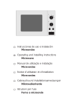 0 1 30 2 25 3 20 15 10 4 5 E Instrucciones de uso e instalación Microondas t Operating and installing instructions Microwave P Manual de utilização e instalação Micro-ondas F Notice d’utilisation et d’installation Micro-ondes D Gebrauchs-und Installationsanweisungen Mikrowellenherde I Istruzioni per l'uso Forno a microonde E 3 4 5 6 7 8 9 10 GB INSTALACIÓN CONSEJOS DESCRIPCIÓN GENERAL FUNCIONAMIENTO EQUIVALENCIA DE LAS POTENCIAS LA FUNCION GRILL LA FUNCION MICROONDAS + GRILL MANTENIMIENTO & LIMPEZA 11 12 13 14 15 16 17 18 INSTALLATION RECOMMENDATIONS GENERAL DESCRIPTION USING YOUR MICROWAVE OVEN MICROWAVE POWER SETTINGS THE GRILL FUNCTION THE MICROWAVE + GRILL FUNCTION CARE & CLEANING Lea atentamente esta guía de utilización. En ella encontrará consejos importantes concernientes a la seguridad, la instalación, y la utilización de su aparato. F P 19 20 21 22 23 24 25 26 Please read this user manual carefully. It contains important instructions concerning installation, use and security measures. INSTALAÇÃO RECOMENDAÇÕES APRESENTAÇÃO UTILIZAÇÃO EQUIVALÊNCIA DAS POTÊNCIAS O FUNÇÃO GRELHADOR O FUNÇÃO MICRO-ONDAS + GRELHADOR LIMPEZA Ler com cuidado este manual de utilização. Conselhos importantes relativos à segurança, à instalação/lugar, e utilização do aparelho. 27 28 29 30 31 32 33 34 Veuillez lire attentivement ce guide d’utilisation. Vous y trouverez des conseils importants concernant la sécurité, l’installation et l’utilisation de votre appareil. I D 35 36 37 38 39 40 41 42 AUFSTELLEN SICHERHEITSHINWEISE BESCHREIBUNG BEDIENUNG LEISTUNGSEINSTELLUNG GRILLBETRIEB KOMBIBETRIEB - MIKROWELLE + GRILL REINIGUNG & PFLEGE Lesen Sie die in dieser Gebrauchsanweisung aufgeführten Informationen aufmerksam durch. Sie geben wichtige Hinweise für die Sicherheit, die Installation Gebrauch und die Wartung des Gerätes. Bewahren Sie diese Gebrauchsanweisung sorgfältig auf. 2 INSTALLATION CONSEILS PRÉSENTATION UTILISATION EQUIVALENCE DES PUISSANCES LA FONCTION GRIL LA FONCTION MICRO-ONDES + GRIL ENTRETIEN & NETTOYAGE 43 44 45 46 47 INSTALLAZIONE CONSIGLI IMPORTANTI PRESENTAZIONE UTILIZAZIONE TABELLA RELATIVA ALLA FUNZIONE DELLE POTENZE 48 FUNZIONE GRILL 49 FUNZIONE MICROONDE + GRILL 50 MANUTENZIONE CORRENTE Leggete attentamente il presente manuale d'uso e manutenzione : vi fornirà importanti consigli per la sicurezza, l'installazione e l'utilizzazione del vostro apparecchio. INSTALLATION Avant branchement • Vérifiez que votre appareil n’ait subi aucune avarie lors du transport (porte ou joint déformé, etc...). Si vous constatez un dommage quelconque, avant toute utilisation, contactez votre revendeur. • Vérifiez la tension du secteur. Dans le cas d’une sous-tension PERMANENTE (200-210 volts), consultez votre installateur électricien. F Emplacement • Cet appareil est destiné à être posé (ou encastré selon les cas) sur un plan de travail situé à au moins 85 cm du sol. • Posez l’appareil sur une surface plane et horizontale, éloigné de toute source de chaleur ou de vapeur. • Assurez-vous de la libre circulation de l’air en dessous et autour du four. Pour les appareils posés sur un plan de travail, choisissez un emplacement qui laisse un espace libre minimum de 20 cm 10 - 20 cm au-dessus de votre appareil cm - 5 cm entre les faces latérales de l’appareil et les murs 5 cm - 10 cm pour la face arrière. 5 cm • Veillez à ne pas obstruer les orifices de ventilation situés à l’arrière du four. • Certains appareils sont encastrables. Pour obtenir le kit correspondant, veuillez consulter votre revendeur. • Veillez à ce que la fiche de prise de courant soit accessible après installation. Raccordement électrique • Votre installation doit être équipée d’une protection thermique de 16 Ampères. • Utilisez impérativement une prise de courant comportant une borne de mise à la terre et raccordée conformément aux normes de sécurité en vigueur. • Prévoyez dans votre installation électrique un dispositif accessible par l’utilisateur qui doit être en mesure de séparer l’appareil du secteur et dont l’ouverture de contact est d’au moins 3 mm au niveau de tous les pôles. • Ne faites pas fonctionner le four si le cordon d’alimentation et/ou sa fiche sont abîmés. Dans ce cas, faites appel au distributeur ou à un technicien spécialisé formé par le fabricant. 27 CONSEILS • Votre appareil est exclusivement destiné à un usage domestique pour la cuisson, le réchauffage ou la décongélation des aliments. Le fabricant se dégage de toute responsabilité en cas d’utilisations non conformes. • Avant toute utilisation, assurez-vous que les récipients et accessoires soient appropriés à l’usage de votre four à micro-ondes (par exemple : verre à feu, porcelaine...). • Pour ne pas détériorer votre appareil, ne jamais le faire fonctionner à vide ou sans plateau. • N’intervenez pas dans les orifices de la serrure en face avant; vous pourriez créer des dommages sur votre appareil qui nécessiteraient une intervention. • Surveillez fréquemment le four lorsque les aliments sont chauffés ou cuits dans des récipients jetables en matière plastique, papier ou autre matériau combustible, à cause des risques d’inflammation. • Il est déconseillé d’utiliser des récipients métalliques, des fourchettes, des cuillères, de couteaux ainsi que des liens et agrafes en métal pour sachets de congélation. • Pour les enfants, il est impératif : - de réchauffer les biberons sans la tétine, d’agiter le liquide et de tester sa température sur le dos de la main avant absorption par l’enfant. - de mélanger et de vérifier la température des aliments pour enfants avant consommation, afin d’éviter des brûlures internes graves. • MISE EN GARDE : Ne laissez les enfants utiliser l’appareil sans surveillance que si des instructions appropriées ont été données afin que l