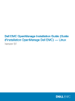 Dell EMC OpenManage Installation Guide (Guide d'installation OpenManage Dell EMC) — Linux Version 9.1 Remarques, précautions et avertissements REMARQUE : Une REMARQUE indique des informations importantes qui peuvent vous aider à mieux utiliser votre produit. PRÉCAUTION : Une PRÉCAUTION indique un risque d'endommagement du matériel ou de perte de données et vous indique comment éviter le problème. AVERTISSEMENT : Un AVERTISSEMENT indique un risque d'endommagement du matériel, de blessures corporelles ou même de mort. Copyright Copyright © 2017 Dell Inc. ou ses filiales. Tous droits réservés. Dell, EMC et d'autres marques de commerce sont des marques de commerce de Dell Inc. ou de ses filiales. Les autres marques de commerce peuvent être des marques de commerce déposées par leurs propriétaires respectifs. 2017 - 12 Rév. A00 Table des matières 1 Introduction....................................................................................................................................................6 Nouveautés de cette version............................................................................................................................................6 Disponibilité du logiciel................................................................................................................................................. 8 Logiciel Systems Management.........................................................................................................................................8 Composants de Server Administrator sur un système géré................................................................................... 8 Fonctionnalités de sécurité..............................................................................................................................................10 Autres documents utiles................................................................................................................................................... 11 2 Configuration de préinstallation.................................................................................................................... 12 Configuration requise pour l'installation......................................................................................................................... 12 Systèmes d'exploitation et navigateurs Web pris en charge................................................................................. 12 Configuration système requise..................................................................................................................................12 Configuration requise des systèmes gérés.............................................................................................................. 13 Normes de protocole de gestion de systèmes prises en charge.......................................................................... 13 Configuration des agents SNMP.................................................................................................................................... 14 Exigences pour Remote Enablement............................................................................................................................. 14 RPM dépendants pour Remote Enablement...........................................................................................................14 Configuration post-installation de Remote Enablement........................................................................................ 15 Configuration de Winbind pour openwsman et sfcb pour les systèmes d'exploitation Red Hat Enterprise Linux................................................................................................................................................................................... 17 Solution au problème Libssl............................................................................................................................................. 18 Configuration de Winbind pour openwsman et sfcb pour le système d'exploitation SUSE Linux Enterprise Server.................................................................................................................................................................................18 3 Installation du logiciel Managed System sur des systèmes Linux et VMware ESXi pris en charge................. 19 Contrat de licence du logiciel..........................................................................................................................................20 RPM de composants individuels.................................................................................................................................... 20 Pilote de périphérique OpenIPMI................................................................................................................................... 26 Dégradation des fonctionnalités au démarrage de Server Administrator Instrumentation Service.................26 Installation du logiciel Managed System........................................................................................................................26 Prérequis pour l'installation du logiciel Managed System...................................................................................... 27 Installation du logiciel Managed System à l'aide du support fourni...................................................................... 27 Utilitaire d'installation personnalisée de Server Administrator..............................................................................30 Installation du logiciel Managed System avec un logiciel de déploiement tiers.................................................. 32 Désinstallation du logiciel Managed System................................................................................................................. 34 Désinstallation du logiciel Managed System à l