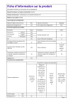 Fiche d’information sur le produit RÈGLEMENT DÉLÉGUÉ (UE) 2019/2016 DE LA COMMISSION Nom du fournisseur ou marque commerciale: Dometic Adresse du fournisseur : Hollefeldstrasse 63, 48282 Emsdetten, DE Référence du modèle: E18FGB Type d’appareil de réfrigération: Appareil à faible niveau de bruit: Non Type de construction: intégrable Appareil de stockage du vin: Oui Autre appareil de réfrigération: Non Paramètres généraux du produit: Paramètre Dimensions hors tout (millimètres) Valeur Hauteur 455 Largeur 590 Profondeur 600 Paramètre Valeur Volume total (dm³ ou l) 52 IEE 132 Classe d’efficacité énergétique G Émissions de bruit acoustique dans l’air [dB(A) re 1 pW] 37 Classe d’émission de bruit acoustique dans l’air C tempérée élargie, subtropicale Consommation d’énergie annuelle (kWh/an) 105 Classe climatique : Température ambiante minimale (°C) à laquelle l’appareil de réfrigération est adapté 10 Température ambiante maximale (°C) à laquelle l’appareil de réfrigération est adapté Réglage hiver Oui 38 Paramètres des compartiments: Paramètres et valeurs de compartiment Volume du compartiment (dm³ ou l) Type de compartiment Réglage de température recommandé pour un stockage optimisé des denrées alimentaires (°C) Ces réglages ne doivent pas être en contradiction avec les conditions de stockage prévues à l’annexe IV, tableau 3; Pouvoir de congélation spécifique (kg/24 h) Mode de dégivrage (dégivrage automatique = A, dégivrage manuel = M) Garde-manger Non - - - - Stockage du vin Oui 52 - - A Page 1 / 2 Cave Non - - - - Denrées alimentaires fraîches Denrées hautement périssables Sans étoile ou fabrication de glace Non - - - - Non - - - - Non - - - - 1 étoile Non - - - - 2 étoiles Non - - - - 3 étoiles Non - - - - 4 étoiles Non - - - - Zone 2 étoiles Non - - - - - - - - - Compartiment à température variable Paramètres de la source lumineuse : Type de source lumineuse - Classe d’efficacité énergétique - Durée minimale de la garantie offerte par le fabricant : 0 mois Informations supplémentaires: Lien internet vers le site web du fabricant où se trouvent les informations visées au point 4 a) de l’annexe du règlement (UE) 2019/2019 de la Commission : https://www.dometic.com/ Page 2 / 2 ">