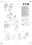 Pub51249_0507.fm Seite 1 Dienstag, 15. Mai 2007 10:40 10 Pub51249 May 2007 Installation Instructions Montageanweisung Notice d’installation Istruzioni per il montaggio XTPAXRHMB XTPAXRHMRY Инструкция по монтажу Dangerous Electrical Current! Only skilled qualified persons may carry out the following operations. XTPAXRHM90B XTPAXRHM90RY Lebensgefahr durch elektrischen Strom! Nur Elektrofachkräfte und elektrotechnisch unterwiesene Personen dürfen die im Folgenden beschriebenen Arbeiten ausführen. 1x ON OFF TRIP Instrucciones de montaje 2x Tension électrique dangereuse ! Seules les personnes qualifiées et averties doivent exécuter les travaux ci-après. Tensione elettrica: Pericolo di morte! Solo persone abilitate e qualificate possono eseguire le operazioni di seguito riportate. 2 ¡Corriente eléctrica! ¡Peligro de muerte! El trabajo a continuación descrito debe ser realizado por personas cualificadas y advertidas. 3 Электрический ток! Опасно для жизни! Только специалисты или проинструктированные лица могут выполнять следующие операции. 1 a b a b 100 – 160 100 – 137 100 – 163 OFF TRIP ON XTPAXRHMSFT XTPAXRHMSFTB72 XTPAXRHMSFTB98 XTPR…B a a = mm 125 – 240 o 4 – 8 mm F 3x Mounting of the extension shaft 1 Montage der Verlängerungsachse XTPAXRHMSFT XTPAXRHMSFTB72 XTPAXRHMSFTB98 2 XTPR…D a a = mm 200 – 317 b 177 – 240 177 – 214 177 – 240 Montage de la rallonge d'axe débrochable Montaggio della prolunga Montaje del eje de prolongación Монтаж телескопического вала 1 2 3 4 100 3 40 4.7 1.5...5 25 4.7 25 3 1/2 Pub51249_0507.fm Seite 2 Dienstag, 15. Mai 2007 10:40 10 5 6 7 2 1 o 7.5 3 48 2 0. 2 ±0 8 1 1 2 48 ± .2 9 2 1 4 2 Activation of the door interlock Aktivierung der Türverriegelung Activation du verrouillage de porte 1 Attivazione del bloccoporta Activación del enclavamiento de puerta 1.5 mm 0.6 Nm 5.3 lb-in Pub51249 May 2007 Активация блокировки двери ON TRIP OFF XTPAXRHM… X – X X – – – X X – – – As supplied (without door interlock) Lieferzustand (ohne Türverriegelung) Etat à la livraison (sans verrouillage de porte) Stato di fornitura (senza bloccoporta) Estado en suministro (sin enclavamiento de puerta) В текущей комплектации поставки (без блокировки двери) with door interlock (active) mit Türverriegelung (aktiv) avec verrouillage de porte (active) con bloccaporta (attivo) con enclavamiento de la puerta (activado) с блокировкой двери (активированной) 1 2 o 4 – 8 mm F 3x 2/2 © 2007 Eaton Corporation Pub51249 May 2007 12290249/DE09 Doku/DM Printed in Germany (05/07) ">