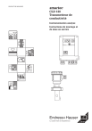 BA 001C.00/14/fr/04.95 BD1LD130.CHP 1. Généralités. . . . . . . . . . . . . . . . . . . . . . . . . . . . . . . . . . . . . . . . . . . . . . . . . . . . . . . . . . . 2 2. Système de mesure. . . . . . . . . . . . . . . . . . . . . . . . . . . . . . . . . . . . . . . . . . . . . . . . . . . . 4 3. Montage . . . . . . . . . . . . . . . . . . . . . . . . . . . . . . . . . . . . . . . . . . . . . . . . . . . . . . . . . . . . . 6 4. Raccordement électrique. . . . . . . . . . . . . . . . . . . . . . . . . . . . . . . . . . . . . . . . . . . . . . 10 5. Mise en service . . . . . . . . . . . . . . . . . . . . . . . . . . . . . . . . . . . . . . . . . . . . . . . . . . . . . . 12 6. Exploitation . . . . . . . . . . . . . . . . . . . . . . . . . . . . . . . . . . . . . . . . . . . . . . . . . . . . . . . . . 13 7. Maintenance et recherche des défauts . . . . . . . . . . . . . . . . . . . . . . . . . . . . . . . . . . 17 8. Caractéristiques techniques . . . . . . . . . . . . . . . . . . . . . . . . . . . . . . . . . . . . . . . . . . . 19 • • • Fig. 1.1 : Plaque signalétique de l'appareil Smartec CLD 130 BD1LD130.CHP Transmetteur de mesure Smartec CLD 130 Construction/Matériau du capteur Version 1 2 Gamme de mesure µ Gamme ATC Alimentation Sortie signal CLD 130 Ω Ω ⇐ référence complète • • • • Milieu mesure Fig. 2.1 : Principe de mesure ld130-34 • • • • • µ conductif Agression chimique 3 3 Fig. 2.2 : Extrait des listes de résistance du PVDF, PEEC, et PVC-C Légende : + résistant 0 résistant sous certaines conditions - non résistant 4 Capacité de résistance BD1LD130.CHP Energie auxiliaire Sortie signal 0 / 4 20 mA transmetteur intégré Fig. 2.4 : Capteur à immersion avec (droite) transmetteur intégré Câble de mesure, Fig. 2. 5 : Transmetteur raccordé au double câble coaxial à (gauche) capteur séparé avec un ld130-28 Capteur avec (gauche) ld130-26 Fig. 2.3 : Transmetteur Câble 7 fils Sortie signal 0 / 4 - 20 mA Energie auxiliaire Energie auxiliaire Sortie signal 0 / 4 - 20 mA tripe blindage, avec con- ld130-29 câble coaxial de 5 m ld130-27 necteur préconfectionné Fig. 2.6 : Capteur à suspension (droite) pendulaire avec transmetteur séparé • • • • • • 1 2 Remarque : 118,5 PE 16 réduit 250 118,5 250 155,5 PE 16 réduit 69 57 G 1 /2" 85 107 min. 20 DN 65 min. 22 1 ø 34 ø 34 Capteur avec raccord laitier Capteur avec raccord Varivent Capteur avec bride IDF 2" Capteur avec bride ronde DN 40/PN 10 Capteur avec raccord tri-clamp 2" 85 Capteur avec raccord fileté R 1 1/2" 102 DN 50, DIN 11851 85 À Á Â Ã Ä Å 250 intégré dans la tête 234 Capteurs avec transmetteur 234 Fig. 3.1 : BD1LD130.CHP 85 85 102 230 Attention : Fig. 3.2 : Capteurs avec tête de raccordement sans transmetteur Capteur avec raccord laitier 1 DIN 40/PN 10 G 1 /2 " DN 50, DIN 11851 69 85 85 Capteur avec raccord laitier Capteur avec raccord Clamp 2" Capteur avec bride IDF 2" Capteur avec raccord fileté R 1 1 /2 " Capteur avec raccord Varivent b D DN I k a DN 40 50 D 150 165 k 110 125 I 18 18 a 62 78 b 16 18 D Fig. 3.3 : id130-49 Dimensions des brides utilisées avec les versions correspondantes Câble de 220 mesure PE 16 à ∅ 47 82 id130-58 Fig. 3.4 : ∅ 49 172 Profondeur d'immersion 400-2000 mm 63 réduction Capteur à immersion avec 86 transmetteur intégré Ø 123 Ø88 Ø 123 Fig. 3.5 : Capteur à immersion sans transmetteur Ø 47 Ø 47 277 Capteur à suspension pendulaire 172 TF1 (protection IP 68) avec capuchon en PVDF, 2 m de tuyau 2000 mm) avec bride ronde tournante DN 50/DN 10 id130-39 (profondeur d'immersion 400 à 82 dans différentes longueurs id130-36 Capteur à immersion ET1 en PVC 82 silicone et bride rond DN 50/PN 10 BD1LD130.CHP Remplacement du capteur id130-30 Attention : Fig. 3.6 : Raccordement par câble et montage du capteur à immersion 110 70 min. id130-32 54 id130-33 id130-31 87 9 133 155 18 Ø 40 Bande de serrage Fig. 3.7 : Plaque de maintien pour montage mural ou sur mât du transmetteur séparé Remarque : Attention : • • • • • Avertissement : • • • Raccordement de l'appareil au réseau de • tension continue + + PE KL2 PE PE N N Alimentation 24 V Fig. 4.1 : Plan de raccordement du capteur avec transmetteur intégré 0/4-20mA jusqu'à 240 V AC (voir plaque signalétique) L1 L1 AC id130-24 KL1(A) BD1LD130.CHP Capteur inductif Pt 100 n r blc blc br vt Câble de mesure n r blc blc br 3 2 vt Transmetteur 1 KL5 2 3 KL4 2 1 KL3 1 Pt 100 κ Ι KL1(A) + + 0/4-20mA PE KL2 PE PE N N L1 L1 AC Alimentation 24 V à id130-25 240 V AC (voir plaque signalétique) Fig. 4.2 : Plan de raccordement du capteur avec transmetteur séparé • • • • BD2LD130.CHP smcibv13 Gamme de mesure 0 ... 2000 Commutateur S 101 Commutateur S 102 Fig. 6.1 : Intérieur du couvercle avec étiquettes de gammes de mesure Commutateur S 401 1 2 1 2 3 1 2 on on on on on on on on on mS/cm 0 ... 20 mS/cm 0 - 200 mS/cm 0 - 1000 mS/cm Tableau 6.1 : Commutation de la gamme de mesure Connecteur afficheur Commutateur gamme de mesure S 401 Borne 5 bobine d'émission Borne 4 bobine de réception Commutateur de la position décimale S 102 Borne 3 sonde de température Pt 100 Borne 1 sortie signal Commutateur sortie signal S101 Borne 2 énergie auxiliaire smcibv14 Potentiomètre R 110 de fin de gamme Potentiomètre R 107 Début de gamme Fig. 6. 2 : Vue intérieure du module Smartec CLD 130 avec bornes et connecteurs de commutation de gamme • Remarque : µ 3 • Détermination du coefficient de température : • • • • • Fig. 6.3 : Concentration en fonction de la température de diverses solutions électrolytiques Bases fortement concentrées Acides fortement concentrés [poids %] Concentration smcbad15 Coefficient de température Solutions salines BD2LD130.CHP Commutateur S 101 Gamme de sortie 3 4 5 0 ... 20 mA on 4 ... 20 mA on on Tableau 6.2 : Commutation de la gamme de sortie Exemple : Procédure : • Ω Ω • • • • 20 mA Sortie signal 