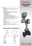 Vanne à membrane à passage intégral, Metallique Conception La vanne motorisée 2/2 voies type GEMÜ 638 est une vanne à membrane à passage intégral avec un moteur et une unité de commande de fabrication AUMA. Caractéristiques • La version avec corps revêtu en caoutchouc est particulièrement adaptée aux cas d’application comprenant des fluides chargés en particules comme par exemple: - l’industrie minière - les installations de désulfuration - l’industrie papetière - le traitement de l’eau - la fabrication et le traitement de céramique - la fabrication de peintures et colorants, l’industrie chimique • Le corps de vanne ainsi que la membrane d’étanchéité sont disponibles dans différents matériaux et différentes versions • Des actionneurs motorisés sont disponibles pour des fonctions d’ouverture/fermeture et de régulation en intégrant plusieurs unités de commande • Pas d’alimentation en pression auxiliaire nécessaire Avantages • Forte résistance mécanique • Rendement important au niveau du débit grâce au diamètre de passage maximal • Sens du débit quelconque • Nettoyage de la vanne possible sans démonter l’actionneur • Moteurs électriques et unités de commande éprouvés dans un système modulaire GEMÜ 638 638 Données techniques Fluide de service Ambient conditions Convient pour les fluides neutres ou agressifs, sous la forme liquide ou gazeuse respectant les propriétés physiques et chimiques des matériaux du corps et de la membrane. Température ambiante max. 50 °C Température max. admissible du fluide 100 °C (en fonction du fluide, du matériau du corps et de la membrane) Les données techniques de l’actionneur AUMA (actionneur rotatif), de l‘unité de commande et de régulation ainsi que du bloc de poussée linéaire sont disponibles dans la fiche technique de la société AUMA. Taille de membrane 40 DN Pression de service 25 40 50 65 65 80 100 100 125 150 150 [bar] 0-7 0-7 0-6 0-3 Poids (approx.) [kg] 39 41 Kv [m³/h] 35 38 61 108 79 284 62 114 88 298 139 680 131 650 Toutes les pressions sont données en bars relatifs. Les pressions de service max. sont déterminées avec la pression de service appliquée en statique vanne fermée d‘un côté du siège. L‘étanchéité au siège et vers l‘extérieur est garantie pour les données ci-dessus. Complément d‘informations sur les pressions de service appliquées des 2 côtés ou pour des fluides high purity sur demande. Valeurs de Kv déterminées selon DIN EN 60534, pression d‘entrée 5 bars, Δp 1 bar, corps de vanne en fonte EN-GJL-250 avec brides EN 1092 encombrement EN 558 série 7 et membrane en élastomère souple. Les valeurs Kv peuvent différer selon les configurations du produit (ex : autres matériaux de membrane ou du corps). En général, toutes les membranes sont soumises à l‘influence de la pression, de la température, du process et des couples de serrage. C‘est pourquoi ces valeurs Kv peuvent dépasser les limites de tolérance du standard. La courbe de valeur Kv (valeur Kv en fonction de la course de la vanne) peut varier en fonction du matériau de la membrane et de la durée d‘utilisation. La vanne ne convient pas pour les applications avec du vide. Correspondance des actionneurs rotatifs, commandes et régulateurs pour les différents diamètres nominaux MG 40 Actionneur Ouvert/Fermé type 638 25 LE12.1 (50) + SA07.2 + AM01.1 LE12.1 (50) + SAR07.2 + AC01.2 50 LE12.1 (50) + SA07.2 + AM01.1 LE12.1 (50) + SAR07.2 + AC01.2 40 65 65 100 150 Actionneur régulateur type 638 DN LE12.1 (50) + SA07.2 + AM01.1 LE12.1 (50) + SA07.2 + AM01.1 LE12.1 (50) + SAR07.2 + AC01.2 LE12.1 (50) + SAR07.2 + AC01.2 80 LE25.1 (100) + SA07.6 + AM01.1 LE25.1 (100) + SAR07.6 + AC01.2 125 LE25.1 (100) + SA07.6 + AM01.1 LE25.1 (100) + SAR07.6 + AC01.2 100 150 LE25.1 (100) + SA07.6 + AM01.1 LE25.1 (100) + SA07.6 + AM01.1 LE 12.1 (50) = bloc de poussée linéaire de AUMA avec course de 50 mm LE 25.1 (100) = bloc de poussée linéaire de AUMA avec course de 100 mm LE25.1 (100) + SAR07.6 + AC01.2 LE25.1 (100) + SAR07.6 + AC01.2 MG = Taille de membrane La commande AUMA AM01.1 est utilisée en standard pour les actionneurs ouvert/fermé et la commande AUMA AC01.2 pour la régulation, Autres applications sur demande! 638 2 Données pour la commande Forme du corps Passage en ligne Raccordement Brides EN 1092 / PN16 / forme A, encombrement EN 558, serie 7, ISO 5752, série de base 7 Brides ANSI Class 125 FF, encombrement EN 558, serie 7, ISO 5752, série de base 7 Code Matériau du corps D Code EN-GJL-250 (GG 25) 8 EN-GJL-250 (GG 25), revêtu ébonite 13 EN-GJL-250 (GG 25), revêtu caoutchouc souple Code Matériau de la membrane 53 52 Code NBR 2 IIR 58 6 CR Voir tableau de correspondance raccordements/matériaux du corps de vanne GEMÜ 638 en page 5 8 EPDM 14 Données pour la commande: La commande doit avoir 2 positions! Pos. 1 Vanne avec adaptateur et bloc de poussée adéquat AUMA par ex. 638 80 D 53 13 14 Détails sur le bloc de poussée AUMA voir documentation technique correspondante. Pos. 2 Actionneur rotatif* AUMA par ex. SA 07.2F1022D380/506822KN Voir documentation technique AUMA. Commande* AUMA Type standard AM01.1TP110/001 1110KC3F18E1 Voir documentation technique AUMA *Autres types sur demande Exemple de réf. pour position 1 628 Type 628 Diamètre nominal Forme du corps (Code) Raccordement (Code) Matériau du corps (Code) 50 50 Pos. 2 Pos. 1 D D 53 53 Matériau de la membrane (Code) 13 13 Autres raccordements, matériaux du corps de vanne, revêtements et matériaux de membrane sur demande 3 638 24 24 Dimensions [mm] Dimensions de l’actionneur Taille de membrane DN H1 H2 50 - 65 32 141 55 302 40 25 - 40 100 80 - 100 65 150 22 47 125 - 150 237 264 191 250 H1 H2 Ø175 191 415 63 98 Sens de montage: vertical (debout) Le poids de l’actionneur doit être supporté par une construction adaptée! 638 4 Dimensions du corps [mm] Raccords à brides, racco