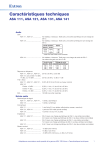Caractéristiques techniques ASA 111, ASA 121, ASA 131, ASA 141 Audio Gain ASA 111, ASA 121 ������������������ Voir tableau ci‑dessous. Testé avec une sortie asymétrique et une charge de 20k Ω. ASA 131 ���������������������������������� Voir tableau ci‑dessous. Testé avec une sortie symétrique et une charge de 20k Ω. Gauche Canal d'entrée Droite Sortie signal signal * signal * signal -1 dB -7 dB -7 dB * Testé avec cette entrée encore connectée. ASA 141 ���������������������������������� Voir tableau ci‑dessous. Testé avec une charge de sortie de 20k Ω. Les valeurs de gain sont de ±2 dB. Canal d'entrée Gauche Droite 0 dB 0 dB 0 dB 0 dB ouvert 50 Ω Câblage de sortie Asymétrique Symétrique +3 dB +3 dB -3 dB -3 dB -3 dB -9 dB Réponse en fréquence ASA 111, ASA 121, ASA 131 �� 20 Hz à 20 kHz, ±0,05 dB ASA 141 avec entrée ‑10 dBV, +4 dBu, ou+15 dBV ���������������� 20 Hz à 20 kHz, ‑3 dB à +1 dB THD + Bruit ASA 111, ASA 121, ASA 131 �� 0,03% @ 20 Hz à 20 kHz au niveau nominal ASA 141 Entrée ‑10 dBV ������������������ 0,05%, 1 kHz, 1% de 40 Hz à 20 kHz Entrée +4 dBu ������������������� 0,05%, 1 kHz, 1% de 50 Hz à 20 kHz Entrée +15 dBV ����������������� 0,05%, 1 kHz, 1% de 80 Hz à 20 kHz S/B ������������������������������������������������ 130 dB à la sortie maximale Entrée audio Nombre/type de signal ASA 111, ASA 121, ASA 141 �� ASA 131 ���������������������������������� Connecteurs ASA 111 ���������������������������������� ASA 121, ASA 141 ������������������ ASA 131 ���������������������������������� Impédance ASA 111, ASA 121 ������������������ 1 stéréo, asymétrique 1 stéréo, symétrique 1 mini fiche 3,5 mm stéréo mâle (pointe, anneau, manchon) 1 paire de RCA mâle (pointe‑anneau) 1 bornier à vis 3,5 mm, 5 pôles 22k Ω (avec une charge asymétrique de 20k Ω, une entrée raccordée) ; 4k Ω (avec une charge asymétrique de 20k Ω, les deux entrées raccordées) ASA 131 ���������������������������������� 24k Ω (avec une charge symétrique de 20k Ω, une entrée raccordée) ; 7k Ω (avec une charge symétrique de 20k Ω, les deux entrées raccordées) ASA 141 ���������������������������������� 5,4k Ω (avec une charge symétrique de 20k Ω, les deux entrées raccordées) Niveau nominal ASA 111, ASA 121 ������������������ ‑10 dBV (316 mVrms) ASA 131 ���������������������������������� +4 dBu (1,23 Vrms) ASA 141 ���������������������������������� ‑10 dBV (316 mVrms) ou +4 dBu (1,23 Vrms) Adaptateurs sommateurs audio passifs de la gamme ASA 100 Extron • Caractéristiques techniques 1 Caractéristiques techniques • ASA 111, ASA 121, ASA 131, ASA 141 (suite) Niveau maximal ASA 111, ASA 121, ASA 131 �� +24 dBu (12,3 V) ASA 141 ���������������������������������� +15 dBV (5,6 V) REMARQUE: 0 dBu = 0,775 Vrms, 0 dBV = 1 Vrms, 0 dBV ≈ 2 dBu Sortie audio Nombre/type de signal ASA 111, ASA 121 ������������������ 1 mono, asymétrique ASA 131 ���������������������������������� 1 mono, symétrique ASA 141 ���������������������������������� 1 transformateur, mono, symétrique/asymétrique Connecteurs ���������������������������������� 1 bornier à vis 3,5 mm, 3 pôles, pour insertion directe Impédance (avec impédance d'entrée de 50 Ω) ASA 111, ASA 121 ������������������ 1k Ω asymétrique ASA 131 ���������������������������������� 2k Ω symétrique ASA 141 ���������������������������������� 3,3k Ω symétrique (normal) Niveau nominal ASA 111, ASA 121 ������������������ ‑10 dBV (316 mV) ASA 131 ���������������������������������� +4 dBu (1,23 V) ASA 141 ���������������������������������� ‑10 dBV (316 mV) ou +4 dBu (1,23 V) Niveau maximal ASA 111, ASA 121 ������������������ +24 dBu (12,3 V) ASA 131 ���������������������������������� +24 dBu (12,3 V) ASA 141 ���������������������������������� +15 dBV (5,6 V) Caractéristiques générales Alimentation ����������������������������������� Non alimenté Température/humidité �������������������� Stockage : ‑40 à +70 °C (‑40 à +158 °F) / 10% à 90%, sans condensation Fonctionnement 