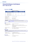 Caractéristiques techniques DTP T HD2 4K 330 Spécifications Capacités maximales 4K Résolution et taux de rafraîchissement 4096 x 2160 à 30 Hz 3840 x 2160 à 30 Hz 4096 x 2160 à 60 Hz 3840 x 2160 à 60 Hz Fréquences d'images¹ ������������������� Échantillonnage de la chrominance¹ ��������������������������������� Profondeur de couleurs¹ ���������������� Type de signal �������������������������������� Débit de données vidéo maximal ��� Échantillonnage de la chrominance Profondeur de bits maximale par couleur 4:4:4 8 bits 4:2:0 24, 25, 30, 50, ou 60 ips 4:4:4, 4:2:2, ou 4:2:0 8 bits par couleur HDMI 1.4, HDCP 1.4 10,2 Gb/s (3,4 Gb/s par couleur) REMARQUE: ¹Soumis à la limite maximale du débit de données. Utilisez notre calculateur sur www.extron.fr/4Kdatarate pour déterminer les paramètres vidéo supportés par ce débit de données. Vidéo Débit de données maximal ������������� 10,2 Gb/s (3,4 Gb/s par couleur) Horloge de pixels maximale ����������� 300 MHz Type de résolution �������������������������� Jusqu'à 2560 x 1600* à 60 Hz, ou 4K (4096 x 2160) à 30 Hz, UHD (3840 x 2160) à 30 Hz, 4K/UHD à 60 Hz avec sous-échantillonnage de la chrominance 4:2:0 (* reduced blanking) Profondeur de couleurs ������������������ 8, 10, ou 12 bits — Soumis à la limite maximale du débit de données Formats ����������������������������������������� Vidéo numérique YCbCr et RVB Standard ���������������������������������������� DVI 1.0, HDMI, HDCP, CEA-861E Entrée vidéo REMARQUE: *Des câbles ou des adaptateurs HDMI/DVI‑D appropriés sont nécessaires pour l'entrée/la sortie du signal DVI. Nombre/type de signal ������������������� 1 HDMI single‑link (ou DVI‑D*) Connecteur ������������������������������������ 1 HDMI femelle 19 broches de type A Longueur du câble d'entrée ����������� Jusqu'à 15 m (50') avec un signal 225 MHz, 30 m (100') avec signal 165 MHz Sortie vidéo Nombre/type de signal ������������������� 1 HDMI single‑link (sortie sonde) 1 DTP 330 (sortie) Émetteur DTP T HD2 4K 330 Extron • Caractéristiques techniques 1 Caractéristiques techniques • DTP T HD2 4K 330 (suite) Interconnexion entre l'émetteur et le récepteur Connecteur ������������������������������������ 1 jack RJ-45 Standard de raccordement ������������ TIA/EIA T568B Distance de transmission du signal 1080p à 60 Hz ������������������������ Jusqu'à 100 m (330') avec un câble paires torsadées blindées (STP) ou le câble XTP DTP 24 2560 x 1600 à 60 Hz ��������������� Jusqu'à 100 m (330') avec un câble STP ou le câble XTP DTP 24 4K/UHD à 30 et 60 Hz ������������ Jusqu'à 100 m (330') avec un câble STP ou le câble XTP DTP 24 Câble requis����������������������������������� Conducteur solide, 24 AWG ou plus Câble recommandé ����������������������� Bande passante 400 MHz, paires torsadées blindées (STP) REMARQUE: Le câble paires torsadées blindées XTP DTP 24 Extron est fortement recommandé pour une performance optimale. REMARQUE: Signaux en mode sortie : DTP : HDMI avec audio embeddé, audio analogique, RS‑232 et IR, et alimentation à distance HDBaseT : HDMI avec audio embeddé ainsi que RS‑232 et IR Contrôle à distance Port de contrôle USB ��������������������� 1 mini USB B femelle sur panneau avant Normes USB���������������������������������� USB 2.0, à faible vitesse Application de contrôle ������������������ Simple Instruction Set (SIS™) Extron, logiciel de configuration des produits Extron (PCS) Communications — Appareil externe (RS-232/IR sur paires torsadées) REMARQUE: Le protocole est symétrisé entre les récepteurs DTP 230 ou DTP 330 raccordés et les ports « Over TP » sur les unités de la gamme DTP T HD2 4K. Les signaux d'un appareil de contrôle traversent chaque port « Over TP », sont embeddés avec le signal DTP, et envoyés vers les récepteurs DTP 230 ou DTP 330 séparés pour le contrôle des sources ou des appareils de destination déportés. Les ports « Over TP » sont des connexions d'insertion simples vers des terminaux DTP. Il n'existe aucune insertion RS‑232 ou IR entre un port de contrôle d'une unité DTP T HD2 4K et les ports « Over TP ». Port de contrôle série ��������������������� RS-232 via 1 bornier à vis 3,5 mm, 5 pôles (connecteur partagé avec les ports de contrôle IR) Vitesse de transmission et protocole ����������������������������������� 300 à 115 200 bauds, 8 ou 7 bits de données, 1 ou 2 bits d'arrêt, aucune parité (par défaut), parité paire ou impaire Configuration des broches de contrôle série ���������������������������� Borniers à vis : 1 = Tx, 2 = Rx, 3 = masse Port d'insertion de contrôle IR ������