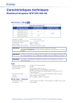 Caractéristiques techniques Émetteur/récepteur DTP DVI 330 4K Spécifications Capacités maximales 4K Résolution et taux de rafraîchissement 4096 x 2160 à 30 Hz 3840 x 2160 à 30 Hz 4096 x 2160 à 60 Hz 3840 x 2160 à 60 Hz Échantillonnage de la chrominance Profondeur de bits maximale par couleur 4:4:4 8 bits 4:2:0 Fréquences d'images¹ ������������������� 24, 25, 30, 50, ou 60 ips Échantillonnage de la chrominance¹ 4:4:4, 4:2:2, ou 4:2:0 Profondeur de couleurs¹ ���������������� 8 bits par couleur Type de signal �������������������������������� HDMI 1.4, HDCP 2.3 Débit de données vidéo maximal ��� 10,2 Gb/s (3,4 Gb/s par couleur) REMARQUE: ¹Soumis à la limite maximale du débit de données. Utilisez notre calculateur (www.extron.fr/8Kdatarate) pour déterminer les paramètres vidéo supportés par ce débit de données. REMARQUE: Ce produit se compose d'un émetteur (DTP DVI 4K 330 Tx) et d'un récepteur (DTP DVI 4K 330 Rx), vendus séparément, avec un câble paires torsadées connectant l'émetteur au récepteur. REMARQUE: *Des câbles ou des adaptateurs HDMI/DVI‑D appropriés sont nécessaires pour l'entrée/la sortie du signal DVI. Vidéo Débit de données maximal ������������� 10,2 Gb/s (3,4 Gb/s par couleur) Horloge de pixels maximale ����������� 300 MHz Type de résolution �������������������������� Jusqu'à 2560 x 1600* à 60 Hz, ou 4K (4096 x 2160) à 30 Hz, UHD (3840 x 2160) à 30 Hz, 4K/UHD à 60 Hz avec sous-échantillonnage de la chrominance 4:2:0 (* reduced blanking) Profondeur de couleurs ������������������ 8, 10, ou 12 bits — Soumis à la limite maximale du débit de données Formats ����������������������������������������� Vidéo numérique YCbCr et RVB Standards �������������������������������������� DVI 1.0, HDMI 1.4, HDCP 2.3, CEA-861E Entrée vidéo — Émetteur Nombre/type de signal ������������������� 1 DVI-D single-link (ou HDMI*) 1 DVI-D single-link (ou HDMI*) local en sonde Connecteurs ���������������������������������� 2 DVI-I femelles Émetteur/Récepteur sur paires torsadées DTP DVI 330 4K Tx/Rx Extron • Caractéristiques techniques 1 Caractéristiques techniques • Émetteur/récepteur DTP DVI 330 4K (suite) Interconnexion entre l'émetteur et le récepteur Connecteurs ���������������������������������� 1 RJ‑45 femelle par unité Standard de raccordement ������������ TIA/EIA T568B Distance de transmission du signal 1080p à 60 Hz ������������������������ Jusqu'à 100 m (330') avec un câble paires torsadées blindées (STP) ou le câble XTP DTP 24 2560 x 1600 à 60 Hz ��������������� Jusqu'à 100 m (330') avec un câble paires torsadées blindées (STP) ou le câble XTP DTP 24 4K/UHD à 30 Hz et 60 Hz ������� Jusqu'à 100 m (330') avec un câble paires torsadées blindées (STP) ou le câble XTP DTP 24 Câble requis����������������������������������� Conducteur solide, 24 AWG ou plus Câble recommandé ����������������������� Bande passante 400 MHz, paires torsadées blindées (STP) REMARQUE: Le câble paires torsadées blindées XTP DTP 24 Extron est fortement recommandé pour une performance optimale. Sortie vidéo — Récepteur Nombre/type de signal ������������������� 1 DVI‑D single‑link (ou HDMI*) Connecteurs ���������������������������������� 1 DVI-I femelle Audio Gain ����������������������������������������������� Réponse en fréquence ������������������� THD + Bruit������������������������������������ S/B ������������������������������������������������ Espacement des canaux stéréo ����� Sortie asymétrique : 0 dB ; Sortie symétrique : +6 dB 20 Hz à 20 kHz, ±0,5 dB 0,03%, 20 Hz à 20 kHz au niveau de sortie maximal >90 dB, à la sortie maximum (15 dBu), symétrique (non pondéré) >80 dB à 1 kHz à 20 kHz Entrée audio Nombre/type de signal ������������������� 1 stéréo niveau PC, asymétrique REMARQUE: L'audio analogique n'est pas embeddé sur le signal vidéo numérique. L'audio numérique embeddé n'est pas désembeddé depuis le signal vidéo numérique. Connecteurs ���������������������������������� 1 jack stéréo 3,5 mm, 2 canaux ; pointe (G), anneau (D), manchon (masse) Impédance������������������������������������� >10 k Ω asymétrique, couplée cc Niveau nominal ������������������������������ -10 dBV (316 mVrms) Niveau maximal������������������������������ +6 dBV (asymétrique) REMARQUE: 0 dBu = 0,775 Vrms, 0 dBV = 1 Vrms, 0 dBV ≈ 2 dBu Sortie audio Nombre/type de sign