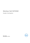 Moniteur Dell S2722QC Guide d’utilisation Modèle : S2722QC Modèle réglementaire : S2722QCb REMARQUE : Une REMARQUE indique des informations importantes qui vous aideront à mieux utiliser votre ordinateur. AVERTISSEMENT : Un AVERTISSEMENT indique un dommage potentiel matériel ou une perte de données si les instructions ne sont pas suivies. MISE EN GARDE : Une MISE EN GARDE attire votre attention sur un risque potentiel vis-à-vis de vos biens, sur des dommages corporels voire sur un danger de mort. Copyright © 2021 Dell Inc. ou ses filiales. Tous droits réservés. Dell, EMC et les autres marques de commerce sont des marques de commerce de Dell Inc. ou de ses filiales. USB Type-C® et USB-C® sont des marques déposées de USB Implementers Forum. Les autres marques de commerce peuvent être des marques de commerce de leurs propriétaires respectifs. 2021 - 09 Rev. A01 Table des matières Consignes de sécurité. . . . . . . . . . . . . . . . . . . . . . . . 6 À propos de votre moniteur. . . . . . . . . . . . . . . . . . . . 7 Contenu de l’emballage . . . . . . . . . . . . . . . . . . . . . . . . . . . 7 Caractéristiques du produit . . . . . . . . . . . . . . . . . . . . . . . . 8 Identification des pièces et contrôles . . . . . . . . . . . . . . . 10 Vue de face . . . . . . . . . . . . . . . . . . . . . . . . . . . . . . . . . . . . . . . . . . . 10 Vue latérale . . . . . . . . . . . . . . . . . . . . . . . . . . . . . . . . . . . . . . . . . . . 10 Vue arrière . . . . . . . . . . . . . . . . . . . . . . . . . . . . . . . . . . . . . . . . . . . 11 Vue de dessous . . . . . . . . . . . . . . . . . . . . . . . . . . . . . . . . . . . . . . . . 12 Spécifications de la résolution. . . . . . . . . . . . . . . . . . . . . 16 Modes vidéo pris en charge . . . . . . . . . . . . . . . . . . . . . . . . . . . . . . 16 Modes d’affichage préréglés . . . . . . . . . . . . . . . . . . . . . . . . . . . . . 16 Spécifications électriques . . . . . . . . . . . . . . . . . . . . . . . . . . . . . . . 18 Caractéristiques physiques. . . . . . . . . . . . . . . . . . . . . . . . . . . . . . . 19 Caractéristiques environnementales . . . . . . . . . . . . . . . . . . . . . . 20 Assignations des broches . . . . . . . . . . . . . . . . . . . . . . . . . . . . . . . . 21 Capacité Plug and Play. . . . . . . . . . . . . . . . . . . . . . . . . . . 22 Interface Universal Serial Bus (USB) . . . . . . . . . . . . . . . . 22 SuperSpeed USB 5 Gbit/s (USB3.2 Gen 1). . . . . . . . . . . . . . . . . . 22 USB Type-C . . . . . . . . . . . . . . . . . . . . . . . . . . . . . . . . . . . . . . . . . 22 Connecteur USB Type-C. . . . . . . . . . . . . . . . . . . . . . . . . . . . . . . . 23 Connecteur USB 3.2 Gen 1 (5 Gbit/s) en aval . . . . . . . . . . . . . . . 23 Ports USB . . . . . . . . . . . . . . . . . . . . . . . . . . . . . . . . . . . . . . . . . . . 24 Politique de qualité relative aux pixels des moniteurs LCD. . . . . . . . . . . . . . . . . . . . . . . . . . . . . . . . . . . . . . . . . . 24 │ 3 Ergonomie . . . . . . . . . . . . . . . . . . . . . . . . . . . . . . . . . . . . 25 Manipuler et déplacer votre écran . . . . . . . . . . . . . . . . . . 27 Lignes directrices relatives à la maintenance. . . . . . . . . . 28 Nettoyer votre moniteur . . . . . . . . . . . . . . . . . . . . . . . . . . . . . . . . 28 Installer le Moniteur. . . . . . . . . . . . . . . . . . . . . . . . 29 Installer le pied . . . . . . . . . . . . . . . . . . . . . . . . . . . . . . . . 29 Connecter votre moniteur . . . . . . . . . . . . . . . . . . . . . . . . 32 Connecter les câbles USB Type-C et d’alimentation . . . . . . . . . . . 32 Connexion des câbles HDMI et d’alimentation (en option) . . . . . . 33 Organiser vos câbles . . . . . . . . . . . . . . . . . . . . . . . . . . . . Mise sous tension de votre moniteur . . . . . . . . . . . . . . . . Sécuriser votre moniteur avec un verrou Kensington (en option) . . . . . . . . . . . . . . . . . . . . . . . . . . . . . . . . . . . . Enlever le pied du moniteur . . . . . . . . . . . . . . . . . . . . . . . Montage mural VESA (en option). . . . . . . . . . . . . . . . . . . 33 34 34 35 35 Utilisation du moniteur. . . . . . . . . . . . . . . . . . . . . . .37 Mise sous tension du moniteur. . . . . . . . . . . . . . . . . . . . . 37 Utiliser les boutons du panneau avant . . . . . . . . . . . . . . . 37 Bouton sur le panneau avant . . . . . . . . . . . . . . . . . . . . . . . . . . . . . 38 Utilisation du menu d’affichage à l’écran (OSD) . . . . . . . 39 Accès au système des menus . . . . . . . . . . . . . . . . . . . . . . . . . . . . 39 Messages d’avertissement OSD . . . . . . . . . . . . . . . . . . . . . . . . . . 56 Réglage de la résolution maximale . . . . . . . . . . . . . . . . . . 61 Conditions requises pour afficher ou lire le contenu HDR . . . . . . . . . . . . . . . . . . . . . . . . . . . . . . . . . . . . . . . . . 61 À l’aide de l’inclinaison, du pivotement et du déploiement vertical . . . . . . . . . . . . . . . . . . . . . . . . . . . . 63 Inclinaison . . . . . . . . . . . . . . . . . . . . . . . . . . . . . . . . . . . . . . . . . . . 63 Pivotement . . . . . . . . . . . . . . . . . . . . . . . . . . . . . . . . . . . . . . . . . . 63 Extension verticale . . . . . . . . . . . . . . . . . . . . . . . . . . . . . . . . . . . . 64 4 │ Rotation de l’écran . . . . . . . . . . . . . . . . . . . . . . . . . . . . . . 64 Pivoter dans le sens horaire . . . . . . . . . . . . . . . . . . . . . . . . . . . . . 65 Pivoter dans le sens antihoraire . . . . . . . . . . . . . . . . . . . . . . . . . . 65 Régler les paramètres d’affichage de rotation de votre système . . . . . . . . . . . . . . . . . . . . . . . . . . . . . . . . . . . . . . 66 Dépannage . . . . . . . . . . . . . . . . . . . . . . . . . . . . . . . 67 Test-Auto . . . . . . . . . . . . . . . . . . . . . . . . . . . . . . . . . . . . . Diagnostiques intégrés. . . .