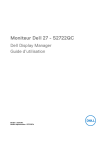 Moniteur Dell 27 - S2722QC Dell Display Manager Guide d’utilisation Modèle : S2722QC Modèle réglementaire : S2722QCb REMARQUE : Une REMARQUE indique des informations importantes qui vous aideront à mieux utiliser votre ordinateur. AVERTISSEMENT : Un AVERTISSEMENT indique un dommage potentiel matériel ou une perte de données si les instructions ne sont pas suivies. MISE EN GARDE : Une MISE EN GARDE attire votre attention sur un risque potentiel vis-à-vis de vos biens, sur des dommages corporels voire sur un danger de mort. Copyright © 2021 Dell Inc. ou ses filiales. Tous droits réservés. Dell, EMC et les autres marques de commerce sont des marques de commerce de Dell Inc. ou de ses filiales. Les autres marques de commerce peuvent être des marques de commerce de leurs propriétaires respectifs. 2021 - 08 Rev. A00 Table des matières Vue d’ensemble. . . . . . . . . . . . . . . . . . . . . . . . . . . . . 4 Utiliser la boîte de dialogue des Réglages rapides . . 5 Configurer les fonctions d’affichage de base . . . . . . 6 Affecter les modes prédéfinis aux applications . . . . 7 Organiser les fenêtres avec Easy Arrange (Organisation facile) . . . . . . . . . . . . . . . . . . . . . . . . . 8 Gérer plusieurs entrées vidéo . . . . . . . . . . . . . . . . . . 11 Restaurer les positions des applications . . . . . . . . 13 Attacher DDM aux fenêtres actives (Windows 10 uniquement) . . . . . . . . . . . . . . . . . . . 14 Appliquer les fonctions de conservation d’énergie . . . . . . . . . . . . . . . . . . . . . . . . . . . . . . . . . 15 Autres touches de raccourci . . . . . . . . . . . . . . . . . . 15 Dépannage . . . . . . . . . . . . . . . . . . . . . . . . . . . . . . . 16 │ 3 Vue d’ensemble Dell Display Manager (DDM) est une application Microsoft Windows utilisée pour gérer un moniteur ou un groupe de moniteurs. Elle permet l’ajustement manuel de l’image affichée, l’affectation des réglages automatiques, la gestion de l’énergie, l’organisation des fenêtres, la rotation de l’image et d’autres fonctions sur certains moniteurs Dell. Une fois installé, Dell Display Manager s’exécute à chaque démarrage du système et peut être facilement accédé depuis la barre de notification de Windows. Les informations sur les moniteurs connectés au système sont disponibles lors du passage au-dessus de l’icône de la barre de notification. Vous pouvez également lancer DDM en cliquant-droit sur l’arrière-plan du bureau pour sélectionner Dell Display Manager dans le menu du bureau. REMARQUE : Dell Display Manager doit utiliser le canal DDC/CI (Display Data Channel Command Interface) pour communiquer avec votre moniteur. Assurez-vous que DDC/CI est activé dans le menu Divers comme suit. 4 │ Vue d’ensemble Utiliser la boîte de dialogue des Réglages rapides Cliquer sur l'icône Dell Display Manager de la barre de notification ouvre la boîte de dialogue Réglages rapides. Lorsque plus d’un moniteur pris en charge par Dell est connecté à l’ordinateur, un moniteur cible spécifique peut être sélectionné en utilisant le menu. La boîte de dialogue Réglages rapides vous permet de régler facilement la luminosité, le contraste, la résolution, la disposition des fenêtres, et ainsi de suite. Elle vous permet également d'activer le basculement automatique entre les modes prédéfini ou de sélectionner un mode prédéfini manuellement. La boîte de dialogue Réglages rapides permet également d’accéder à l’interface utilisateur avancée de Dell Display Manager qui est utilisée pour ajuster les fonctions de base, configurer le Mode auto et accéder aux autres fonctions. REMARQUE : Fonctionnalité Accès DDM rapide Fonction Touche rapide pour appeler l’interface utilisateur DDM Description • Ctrl+Maj+D Utiliser la boîte de dialogue des Réglages rapides │ 5 • Sélectionnez le moniteur dans la liste Contrôlez un déroulante. Si plusieurs moniteurs sont moniteur connectés à votre ordinateur, une icône individuel dans apparaît sur le moniteur sélectionné une configuration pendant une seconde afin que vous sachiez à plusieurs quel moniteur vous avez sélectionné. moniteurs • Effectuez la vérification à l’aide de la fonction de test automatique de l’écran. • Déplacez l’interface utilisateur DDM sur le moniteur à contrôler. • Appuyez sur Ctrl+Maj+D pour afficher la miniUI sous le pointeur de la souris. Configurer les fonctions d’affichage de base Vous pouvez sélectionner manuellement un mode prédéfini ou vous pouvez sélectionner le Auto Mode (Mode Auto) qui applique un mode prédéfini basé sur l’application active. Un message à l’écran affiche momentanément le Preset Mode (Mode prédéfini) actuel chaque fois qu’il change. Brightness (Luminosité) et Contrast (Contraste) du moniteur sélectionné peuvent également être ajustés directement à partir de l’onglet Basic (De base). REMARQUE : Lorsque plusieurs moniteurs Dell sont connectés, sélectionnez « Enable display matrix control » (Activer le contrôle de la matrice d'affichage) pour appliquer les contrôles de luminosité, de contraste et de préréglage des couleurs à tous les moniteurs. 6 │ Utiliser la boîte de dialogue des Réglages rapides Affecter les modes prédéfinis aux applications L’onglet Auto Mode (Mode Auto) vous permet d’associer un Preset Mode (Mode prédéfini) spécifique à une application spécifique, et de l’appliquer automatiquement. Lorsque Auto Mode (Mode Auto) est activé, Dell Display Manager passera automatiquement au Preset Mode (Mode prédéfini) correspondant chaque fois que l’application associée est activée. Le Preset Mode (Mode prédéfini) affecté à une application particulière peut être le même sur chaque moniteur connecté, ou il peut varier d’un moniteur à un autre. Dell Display Manager est préconfiguré pour de nombreuses applications populaires. Pour ajouter une 