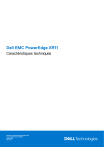 Dell EMC PowerEdge XR11 Caractéristiques techniques Numéro de pièce détachée: E72S Series Type réglementaire: E72S001 Juillet 2021 Rév. A00 Remarques, précautions et avertissements REMARQUE : Une REMARQUE indique des informations importantes qui peuvent vous aider à mieux utiliser votre produit. PRÉCAUTION : ATTENTION vous avertit d’un risque de dommage matériel ou de perte de données et vous indique comment éviter le problème. AVERTISSEMENT : un AVERTISSEMENT signale un risque d’endommagement du matériel, de blessure corporelle, voire de décès. © 2021 Dell Inc. ou ses filiales. Tous droits réservés. Dell, EMC et les autres marques commerciales mentionnées sont des marques de Dell Inc. ou de ses filiales. Les autres marques peuvent être des marques commerciales de leurs propriétaires respectifs. Table des matières Chapitre 1: Caractéristiques techniques............................................................................................4 Dimensions du boîtier............................................................................................................................................................ 5 Poids du système...................................................................................................................................................................6 Spécifications du processeur............................................................................................................................................... 6 Spécifications des blocs d’alimentation (PSU).................................................................................................................. 6 Systèmes d’exploitation pris en charge...............................................................................................................................7 Caractéristiques des ventilateurs de refroidissement....................................................................................................... 7 Spécifications de la batterie du système............................................................................................................................ 7 Caractéristiques des cartes de montage de cartes d’extension......................................................................................7 Spécifications de la mémoire................................................................................................................................................ 7 Caractéristiques du contrôleur de stockage...................................................................................................................... 8 Caractéristiques des lecteurs...............................................................................................................................................8 Spécifications des ports et connecteurs............................................................................................................................ 9 Caractéristiques des ports USB.....................................................................................................................................9 Caractéristiques du processeur graphique................................................................................................................... 9 Caractéristiques du connecteur série............................................................................................................................9 Spécifications du port VGA............................................................................................................................................ 9 Caractéristiques vidéo...........................................................................................................................................................9 Spécifications environnementales......................................................................................................................................10 Caractéristiques de contamination de particules et gazeuse.................................................................................... 11 Certifications et caractéristiques des modèles renforcés......................................................................................... 12 Tableau des restrictions thermiques............................................................................................................................ 13 Table des matières 3 1 Caractéristiques techniques Les caractéristiques techniques et environnementales de votre système sont énoncées dans cette section. Sujets : • • • • • • • • • • • • • • 4 Dimensions du boîtier Poids du système Spécifications du processeur Spécifications des blocs d’alimentation (PSU) Systèmes d’exploitation pris en charge Caractéristiques des ventilateurs de refroidissement Spécifications de la batterie du système Caractéristiques des cartes de montage de cartes d’extension Spécifications de la mémoire Caractéristiques du contrôleur de stockage Caractéristiques des lecteurs Spécifications des ports et connecteurs Caractéristiques vidéo Spécifications environnementales Caractéristiques techniques Dimensions du boîtier Figure 1. Dimensions du boîtier Tableau 1. Dimensions du boîtier Disques Xa Xb Y Za Zb Zc 4 disques de 2,5 pouces avec configuration accès arrière 482,6 mm (19 pouces) 434 mm (17 pouces) 42,8 mm (1,68 pouce) 31 mm (1,22 pouce) Sans panneau 400 mm (15,74 pouces) 432 mm (17 pouces) De l’oreille à la paroi arrière De l’oreille à la poignée du bloc d’alimentation 45,0 mm (1,77 pouce) Avec panneau Caractéristiques techniques 5 Tableau 1. Dimensions du boîtier (suite) Disques Xa Xb Y Za Zb Zc 4 disques de 2,5 pouces avec configuration accès avant 482,6 mm (19 pouces) 434 mm (17 pouces) 42,8 mm (1,68 pouce) 63 mm (2,48 pouces) Sans panneau 400 mm (15,74 pouces) s.o. De l’or