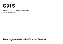 G91S MANUEL DE L'UTILISATEUR FCC ID: YHLBLUG91S Renseignements relatifs à la sécurité Veuillez lire attentivement les termes ci-dessous : Utiliser de façon sécuritaire Ne jamais utiliser le téléphone dans des situations où il pourrait causer un danger. Sécurité au volant Veuillez observer toutes les lois et règles de transport. Veuillez conduire avec les deux mains sur le volant. VEUILLEZ CONDUIRE DE MANIÈRE RESPONSABLE - NE JAMAIS TEXTER ET CONDUIRE Sécurité dans les hôpitaux Veuillez suivre les règles et limitations des hôpitaux. Veuillez éteindre votre téléphone mobile si vous êtes près d'appareils médicaux. Sécurité aéroportuaire N'oubliez pas de suivre les règles de sécurité des aéroports et de vol. Avertissement chimique Ne pas utiliser votre téléphone mobile près de carburants ou produits chimiques. Avertissement de température Ne jamais exposer votre téléphone à des conditions de température extrêmes. Risque lié à l'eau Votre téléphone n'est pas à l'épreuve de l'eau. Garder votre téléphone à l'abri de l'eau ou de tout autre liquide pour éviter des dommages. Appels d'urgence S'assurer que votre téléphone mobile est allumé dans une zone de service. Dans l'écran d'accueil, toucher sur la touche téléphone et composer le numéro d'urgence. Accessoires et batteries Utiliser seulement des batteries et accessoires homologués pour BLU. Sauvegarde des informations Ne pas oublier de conserver par écrit toutes les informations importantes. Sécurité de la batterie et mesures de précautions > Pour de meilleurs résultats et une meilleure autonomie de la batterie, il est recommandé de charger la batterie complétement avant d'utiliser le téléphone mobile pour la première fois. > La performance optimale d'une nouvelle batterie est généralement obtenue après deux ou trois cycles de charge complets. Note : Ne pas oublier que la surcharge continue aura des répercussions sur la durée de vie de la batterie. > Pendant la charge de la batterie, conserver le téléphone mobile hors de portée des enfants. > Garder la batterie dans un endroit frais et sec loin des rayons du soleil et de l'eau. > Ne pas exposer les piles à des températures extrêmes (inférieure à -8 °C (18 °F) ou supérieure à 43 °C (110 °F). > Cesser immédiatement d'utiliser la batterie si elle dégage une odeur, a des fissures et des fuites, une surchauffe, ou si elle est déformée ou à tout autre type de dommage physique. > Éviter d'utiliser le chargeur à proximité ou proche des liquides. Si le chargeur est en contact avec de l'eau ou n'importe quel liquide, le débrancher immédiatement afin de réduire le risque de surchauffe, de mauvais fonctionnement, de décharge électrique ou d'incendie. Déchets dangereux - Mise au rebut des batteries Avertissement : Ne pas jeter les batteries avec les déchets quotidiens incontrôlés. Le symbole retrouvé dans ce manuel indique que la batterie dans ce produit ne doit pas être mise au rebut avec les déchets quotidiens à la fin de leur durée utile. Si les batteries ne sont pas mises au rebut adéquatement, les substances qui s'y trouvent peuvent nuire à la santé humaine et à l'environnement. Veuillez-vous conformer aux lois environnementales pour disposer correctement de vos déchets. Nettoyage et Entretien - Éviter d'utiliser l'appareil et les accessoires dans des endroits trop humides pour éviter le mauvais fonctionnement. - Utiliser un chiffon doux et sec pour nettoyer l'appareil, la batterie et le chargeur. - Ne pas utiliser d'alcool, de diluant, de benzène ou tout autre solvant pour nettoyer l'appareil . Introduction Marche/Arrêt En fonction - Veuillez-vous assurer que la carte SIM est bien insérée dans le téléphone. Appuyer longuement sur la touche Marche/Arrêt pour allumer le téléphone. Hors tension - En mode veille, appuyer longuement la touche Marche/Arrêt jusqu'à ce le menu options s'affiche. Sélectionner Arrêt à partir du menu pour éteindre le téléphone. Barre de Navigation La barre de navigation est un espace dédié qui affiche des boutons de navigation de dispositif. Ces boutons de système permettent à l'utilisateur de contrôler le téléphone avec efficacité. Reculer Retourne à l'écran précédent ; Ferme du clavier, tous les programmes ouverts ou n'importe quelle option de menu. Accueil Bouton d'accueil arrête toute action en cours, puis retourne à l'écran d'accueil. Vous pouvez également accéder au tiroir d'applications, aux applications récentes et à l'application précédente. Applications Récentes Ouvre une liste d'applications récemment ouvertes qui permet de basculer facilement entre eux. Cette option peut également fermer toutes les applications ouvertes en faisant glisser sur le côté. Zone de notification La zone de notification est située sur le haut de l'écran qui contient des informations utiles et importantes concernant votre téléphone et les applications qui sont installées. Dans la zone de notification, plusieurs icônes apparaîtront comme l'indicateur de l'intensité du signal, temps, le niveau de charge de la batterie, l'indicateur de données, les indicateurs de Bluetooth et de Wi-Fi activés. Vous pouvez faire glisser la zone de notification vers le bas avec votre doigt pour afficher les notifications ou les actions en cours. Menu de paramétrage rapide (touches) Notification et Applications en cours Configuration rapide des paramètres de notification Touche effacer les notifications Configuration des paramètres de notification La fenêtre des paramètres de notification fournit des raccourcis vers différents paramètres du téléphone pour un accès rapide. Cliquer sur l'un des raccourcis de notification pour l'activer ou désactiver. Pour effacer les notifications : » Faire glisser la zone de notification vers le bas et cliquer sur l'icône Effacer les notifications situées au coin inférieur droit de l'écran. Le menu Par