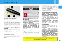 SIG N A L I S AT I O N Ne l’utilisez qu’en cas de danger, pour un arrêt d’urgence ou pour une conduite dans des conditions inhabituelles. Le signal de détresse fonctionne aussi contact coupé. Indicateurs de direction Gauche, vers le bas. Droite, vers le haut. Pour un changement de direction, enclenchez la commande au-delà du point dur. L’arrêt automatique s’effectue avec le retour du volant. Avertisseur optique / Appel de phares Par impulsion en tirant vers vous. L’appel optique est possible contact coupé. Avertisseur sonore Appuyez sur la partie inférieure du volant à commandes centrales fixes. Allumage d’urgence des feux de détresse Une forte décélération du véhicule provoque l’allumage automatique des feux de détresse. Les feux s’éteindront automatiquement à la réaccélération du véhicule ou manuellement en appuyant sur la commande de feux de détresse sur la planche de bord. Signal de détresse Le signal de détresse commande simultanément les feux indicateurs de direction. II Signal sonore de feux allumés Contact coupé, le signal se déclenche à l’ouverture de la porte conducteur pour indiquer que les feux sont restés allumés. Il s’arrête à la fermeture de la porte, à l’extinction des feux, ou à la mise du contact. Ce signal est inactif si l’allumage automatique des feux et/ou l’éclairage d’accompagnement sont activés. Balisage latéral Le balisage latéral signale la présence de votre véhicule en stationnement. Il s’active à l’aide de l’indicateur de direction, un court instant après coupure du contact et entraîne l’allumage des feux de position avant et arrière du côté sélectionné. Un signal sonore et l’allumage temporaire de l’indicateur de direction confirment l’activation de la fonction. Rouler avec le signal de détresse rend les indicateurs de direction inopérants. 79 ">