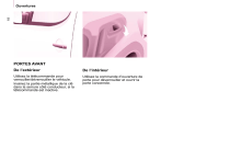 Ci-dessous, vous trouverez de brèves informations pour Berlingo Berlingo2VU. Découvrez comment ouvrir et fermer les portes avant de votre véhicule. Instructions pour l'utilisation de la télécommande, de la clé et de la commande d'ouverture de porte intérieure.