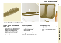123 Changer un balai d’essuie-vitre Mise en position particulière des balais avant - Moins d’une minute après avoir coupé le contact, actionnez la commande d’essuie-vitre vers le bas pour positionner les balais le long des montants du pare-brise (position particulière). Echange d’un balai avant Soulevez le bras. Déclipez le balai et déposez-le. Montez le nouveau balai. Rabattez le bras. Pour ranger les balais, mettez le contact et actionnez la commande d’essuie-vitre. Échange du balai arrière Soulevez le bras, puis déclipez le balai et déposez-le. Montez le nouveau balai et rabattez le bras. AIDE RAPIDE CHANGER UN BALAI D’ESSUIE-VITRE 7 ">