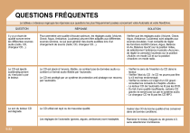 QUESTIONS FRÉQUENTES Le tableau ci-dessous regroupe les réponses aux questions les plus fréquemment posées concernant votre Autoradio et votre NaviDrive. QUESTION RÉPONSE SOLUTION Il y a un écart de qualité sonore entre les différentes sources audio (radio, CD, changeur CD...). Pour permettre une qualité d’écoute optimum, les réglages audio (Volume, Grave, Aigus, Ambiance, Loudness) peuvent être adaptés aux différentes sources sonores, ce qui peut générer des écarts audibles lors d’un changement de source (radio, CD, changeur CD...). Vérifier que les réglages audio (Volume, Grave, Aigus, Ambiance, Loudness) sont adaptés aux sources écoutées. Il est conseillé de régler les fonctions AUDIO (Grave, Aigus, Balance Ar-Av, Balance Ga-Dr) sur la position milieu, de sélectionner l’ambiance musicale «Aucune», de régler la correction loudness sur la position «Active» en mode CD et sur la position «Inactive» en mode radio. Le CD est éjecté systématiquement ou n’est pas lu par le lecteur. Le CD est placé à l’envers, illisible, ne contient pas de données audio ou contient un format audio illisible par l’autoradio. - Vérifier le sens de l’insertion du CD dans le lecteur. - Vérifier l’état du CD : le CD ne pourra pas être lu s’il est trop endommagé. - Vérifier le contenu s’il s’agit d’un CD gravé : consultez les conseils du chapitre «Audio». - Le lecteur CD de l’autoradio ne lit pas les DVD. - Du fait d’une qualité insuffisante, certains CD gravés ne seront pas lus par le système audio. - Le changeur CD ne lit pas les CD MP3. Le son du lecteur CD est dégradé. Le CD utilisé est rayé ou de mauvaise qualité. Insérer des CD de bonne qualité et les conserver dans de bonnes conditions. Les réglages de l’autoradio (graves, aigues, ambiances) sont inadaptés. Ramener le niveau d’aigues ou de graves à 0, sans sélectionner d’ambiance. 9.82 Le CD est protégé par un système de protection anti-piratage non reconnu par l’autoradio. RÉPONSE SOLUTION 9.83 QUESTION Les stations mémorisées ne fonctionnent pas (pas de son, 87,5 Mhz s’affiche...). La gamme d’onde sélectionnée n’est pas la bonne. Appuyer sur la touche BAND AST pour retrouver la gamme d’onde (AM, FM1, FM2, FMAST) où sont mémorisées les stations. L’annonce trafic (TA) est affichée. Je ne reçois aucune information routière. La station radio ne participe pas au réseau régional d’information trafic. Basculer sur une radio qui diffuse des informations trafic. La qualité de réception de la station radio écoutée se dégrade progressivement ou les stations mémorisées ne fonctionnent pas (pas de son, 87,5 Mhz s’affiche...). Le véhicule est trop éloigné de l’émetteur de la station écoutée ou aucun émetteur n’est présent dans la zone géographique traversée. Activer la fonction RDS afin de permettre au système de vérifier si un émetteur plus puissant se trouve dans la zone géographique. L’environnement (colline, immeuble, tunnel, parking sous-sol...) bloque la réception, y compris en mode de suivi RDS. Ce phénomène est normal et ne traduit pas une défaillance de l’autoradio. L’antenne est absente ou a été endommagée (par exemple lors d’un passage en lavage ou dans un parking souterrain). Faire vérifier l’antenne par le réseau CITROËN. Coupures du son de 1 à 2 secondes en mode radio. Le système RDS recherche pendant cette brève coupure du son une éventuelle fréquence permettant une meilleure réception de la station. Désactiver la fonction RDS si le phénomène est trop fréquent et toujours sur le même parcours. Moteur coupé, l’autoradio s’arrête après plusieurs minutes d’utilisation. Lorsque le moteur est coupé, le temps de fonctionnement de l’autoradio dépend de la charge de la batterie. L’arrêt est normal : l’autoradio se met en mode économie d’énergie et se coupe afin de préserver la batterie du véhicule. Démarrer le moteur du véhicule afin d’augmenter la charge de la batterie. Le message «le système audio est en surchauffe» s’affiche à l’écran. Afin de protéger l’installation en cas de température environnante trop élevée, l’autoradio bascule dans un mode automatique de protection thermique menant à une réduction du volume sonore ou à l’arrêt de la lecture CD. Couper le système audio pendant quelques minutes afin de laisser le système refroidir. Le tableau ci-dessous regroupe les réponses aux questions les plus fréquemment posées concernant votre NaviDrive. QUESTION RÉPONSE SOLUTION La case INFO TRAFIC est cochée. Pourtant, certains embouteillages sur l’itinéraire ne sont pas indiqués en temps réel. Au démarrage, le système met quelques minutes pour capter les informations trafic. Attendre que les informations trafic soient bien reçues (affichage sur la carte des pictos d’informations trafic). Dans certains pays, seuls les grands axes (autoroutes, ...) sont répertoriés pour les informations trafic. Ce phénomène est normal. Le système est dépendant des informations trafic disponibles. Le temps de calcul d’un itinéraire paraît parfois plus long que d’habitude. Les performances du système peuvent momentanément être ralenties, si un CD est en cours de copie sur le Jukebox en même temps que le calcul d’un itinéraire. Attendre la fin de la copie du CD ou arrêter la copie avant de démarrer un guidage. L’appel d’urgence fonctionne-t-il sans carte SIM ? Non, car la réglementation européenne impose d’avoir une carte SIM pour passer un appel d’urgence. Insérer une carte SIM valide dans la trappe du NaviDrive. Ma carte SIM n’est pas reconnue. Le NaviDrive admet des cartes SIM de 3,3V, les anciennes carte SIM 5V et 1,8V ne sont pas reconnues. Consulter votre opérateur téléphonique. Après avoir changé une roue, le système perd sa localisation Le NaviDrive utilise les informations de rotation des ro