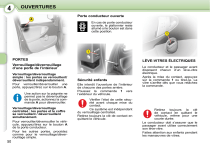 4 OUVERTURES Porte conducteur ouverte En cas de porte conducteur ouverte, le plafonnier reste allumé si le bouton est dans cette position. PORTES LÈVE-VITRES ÉLECTRIQUES Verrouillage/déverrouillage d’une porte de l’intérieur Verrouillage/déverrouillage simple : les portes se verrouillent/ déverrouillent indépendamment. Pour verrouiller/déverrouiller une porte, appuyez/tirez sur le bouton A. Une action sur la poignée ne permet pas le déverrouillage de la porte, actionnez la commande A pour déverrouiller. 50 Verrouillage/déverrouillage centralisé : les portes et le coffre se verrouillent / déverrouillent simultanément. Pour verrouiller/déverrouiller le véhicule, appuyez/tirez sur le bouton A de la porte conducteur. Pour les autres portes, procédez comme pour le verrouillage/déverrouillage simple. Sécurité enfants Elle interdit l’ouverture de l’intérieur de chacune des portes arrière. Poussez la commande 1 vers l’extérieur du véhicule. Vérifier l’état de cette sécurité avant chaque mise du contact. Ce système est indépendant du verrouillage centralisé. Retirez toujours la clé de contact en quittant le véhicule. Le conducteur et le passager avant disposent chacun d’un lève-vitre électrique. Après la mise du contact, appuyez sur la commande 1 ou tirez-la. La vitre s’arrête dès que vous relâchez la commande. Retirez toujours la clé de contact en quittant le véhicule, même pour une courte durée. Le conducteur doit s’assurer que le passager avant utilise correctement son lève-vitre. Faites attention aux enfants pendant les manœuvres de vitres. ">
