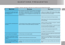 QUESTIONS FRÉQUENTES Le tableau ci-dessous regroupe les réponses aux questions les plus fréquemment posées. QUESTIONS RÉPONSES SOLUTIONS Il y a un écart de qualité sonore entre les différentes sources audio (radio, CD, Changeur CD...). Pour permettre une qualité d’écoute optimum, les réglages audio (Volume, Graves, Aigus, Ambiance, Loudness) peuvent être adaptés aux différentes sources, ce qui peut générer des écarts audibles lors d’un changement de sources (radio, CD, Changeur CD...). Vérifier que les réglages AUDIO (Volume, Graves, Aigus, Ambiance et Loudness) sont adaptés à vos souhaits pour chacune des sources écoutées. IX Vérifier le sens d’insertion de CD dans le lecteur. Vérifier l’état du CD : le CD ne pourra pas être lu s’il est trop endommagé. Le CD est éjecté systématiquement du lecteur. Le CD est placé à l’envers, illisible, ne contient pas de données audio ou contient un format audio illisible pour l’autoradio. Vérifier le contenu s’il s’agit d’un CD gravé : consultez les conseils du chapitre Audio. Du fait d’une qualité insuffisante, certains CD gravés ne seront pas lus par le système audio. Le lecteur CD de l’autoradio ne lit pas les DVD. Le chargeur CD ne lit pas les CD MP3. Le son du lecteur CD est dégradé. Le CD est rayé ou de mauvaise qualité. Insérer des CD de bonne qualité et les conserver dans de bonnes conditions. Les stations mémorisées ne fonctionnent pas (pas de son, 87,5 MHz s’affiche...). La gamme d’onde sélectionnée n’est pas la bonne. Appuyer sur la touche BND pour retrouver la gamme d’onde (AM,FM1, FM2, FMAST) où sont mémorisées les stations. L’annonce trafic (TA) est affichée. Je ne reçois aucune information routière ou de la publicité. La station radio ne participe pas au réseau régional d’information trafic. Basculer sur une radio qui diffuse des informations trafic. 55 QUESTIONS FRÉQUENTES QUESTIONS RÉPONSES SOLUTIONS Le véhicule est trop éloigné de l’émetteur ou aucun émetteur n’est présent dans la zone géographique traversée. Activer la fonction RDS afin de permettre au système de vérifier si un émetteur plus puissant se trouve dans la zone géographique. L’environnement (colline, immeuble, tunnel, parking sous-sol...) bloque la réception, y compris en mode de suivi RDS. Ce phénomène est normal et se traduit par une défaillance de l’autoradio. L’antenne est absente ou a été endommagée (par exemple lors d’un passage en lavage ou dans un parking souterrain). Faire vérifier l’antenne par un concessionnaire. Coupures de son de 1 à 2 secondes en mode radio. Le système RDS recherche pendant cette brève coupure une éventuelle fréquence permettant une meilleure réception de la station. Désactiver la fonction RDS si le phénomène est trop fréquent et toujours sur le même parcours. Moteur coupé, l’autoradio s’arrête après plusieurs minutes d’utilisation. Lorsque le moteur est coupé, le temps de fonctionnement de l’autoradio dépend de la charge de la batterie. L’arrêt est normal : l’autoradio se met en mode économie d’énergie et se coupe afin de préserver la batterie du véhicule. Démarrer le moteur du véhicule afi n d’augmenter la charge de la batterie. Le message « le système audio est en surchauffe » s’affiche à l’écran. Afin de protéger l’installation en cas de température environnante trop élevée, l’autoradio bascule dans un mode automatique de protection thermique menant à une réduction du volume sonore ou à l’arrêt de la lecture CD. Couper le système audio pendant quelques minutes afin de le laisser refroidir. IX La qualité de réception de la station radio écoutée se dégrade progressivement. Pourquoi n’est-on pas informé en temps réel d’un embouteillage sur l’itinéraire alors que l’option de guidage par « info trafic » est activée ? 56 Pourquoi un détour n’est-il pas proposé alors que j’ai sélectionné l’affi chage des infos trafic ? Au démarrage le système met quelques minutes pour capter les informations trafic par le RDS-TMC. Seuls les grands axes (autoroutes ou certaines nationales) sont répertoriés pour les informations trafic RDS-TMC. Il peut arriver qu’un embouteillage ne soit répertorié par le fournisseur d’info trafic. Ne pas confondre l’option de guidage « info trafic » qui permet de proposer un détour (le bouton « dévier » s’affiche dans la fenêtre) et le menu « affichage des messages trafic » ou « lecture des messages trafic » qui affecte uniquement l’affichage sans recalcul d’itinéraire (pas de bouton « dévier » dans la fenêtre). Attendre que les informations trafic soient bien reçues (affichage sur la carte des pictogrammes) et vous assurer que vous utilisez les grands axes pour avoir une navigation « informée ». Pour avoir la navigation « informée » avec proposition de détour, il faut impérativement activer l’option de guidage avec « info trafic ». ">