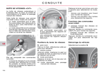 CONDUITE BOÎTE DE VITESSES «CVT» Déplacez le levier vers le bas, puis vers la gauche pour sélectionner ce mode, puis : - donnez une impulsion vers l’avant pour monter les rapports, - donnez une impulsion vers l’arrière pour descendre les rapports. La boîte de vitesses automatique à 6 vitesses offre, au choix, le confort de l’automatisme ou le plaisir du passage manuel des vitesses. Cette boîte de vitesses vous permet d’accéder à deux modes de conduite : - un mode automatisé pour la gestion automatique des vitesses par la boîte et donc sans intervention du conducteur, - un mode séquentiel pour le passage manuel des vitesses par le conducteur à l’aide des commandes sousvolant ou du levier de vitesses. Fonctions des commandes sous-volant - VII Elle est composée des commandes suivantes : - un levier de vitesses 1 sur la console centrale pour sélectionner le mode de conduite, la marche arrière et le point mort ou passer les rapports en mode séquentiel, 114 une commande sous-volant «-» 2 pour descendre les rapports séquentiellement, une commande sous-volant «+» 3 pour monter les rapports séquentiellement. + : passage manuel des vitesses en mode séquentiel. Appuyez derrière la commande sousvolant «+» pour monter les rapports. - : passage manuel des vitesses en mode séquentiel. Appuyez derrière la commande sousvolant «-» pour descendre les rapports. Positions du levier de vitesses Démarrage du véhicule N : point mort. Pied sur le frein, sélectionnez cette position pour démarrer. R : marche arrière. Véhicule arrêté, maintenez le pied sur la pédale de frein et actionnez le levier de vitesses vers le haut. D : mode automatisé. Déplacez le levier vers le bas pour sélectionner ce mode. +/- : mode séquentiel avec passage manuel des vitesses. Sélectionnez la position N. CONDUITE Appuyez franchement sur la pédale de frein pendant le démarrage du moteur. Démarrez le moteur «N» apparaît sur l’afficheur du combiné. Sélectionnez la première vitesse (position D ou +/-) ou la marche arrière (position R). Desserrez le frein de stationnement. Retirez le pied de la pédale de frein, puis accélérez. «D» ou «1» ou «R» apparaissent sur l’afficheur du combiné. Arrêt - Démarrage en côte Pour immobiliser le véhicule en côte, il est nécessaire d’utiliser le frein à main et non pas la pédale d’accélérateur. Dans le cas d’un démarrage en côte, accélérez progressivement tout en lâchant le frein de stationnement. Passage en mode séquentiel Après le démarrage du véhicule, vous pouvez passer en mode séquentiel en sélectionnant la position +/-. «D» disparaît et les rapports engagés apparaissent successivement sur l’afficheur du combiné. Les demandes de changement de rapport se font uniquement si le régime moteur le permet. Levez légèrement le pied de la pédale d’accélérateur pour engager le rapport. Dans le cas de vitesse réduite, à l’approche d’un stop ou d’un feu tricolore par exemple, la boîte de vitesses rétrograde automatiquement jusqu’en première vitesse. Passage en mode automatisé Mode automatisé Après l’utilisation du mode séquentiel, vous pouvez revenir au mode automatisé en sélectionnant la position D. «D» apparaît sur l’afficheur du combiné. La boîte de vitesses fonctionne alors en mode auto-actif, sans intervention du conducteur. Elle sélectionne en permanence le rapport de vitesse le mieux adapté aux paramètres suivants : - style de conduite, - profil de la route, - charge du véhicule. Pour optimiser le confort de conduite et obtenir le rapport le mieux adapté, évitez des variations brutales sur la pédale d’accélérateur. Mode «auto séquentiel» En mode automatisé, il est possible à tout moment de reprendre la main temporairement aux commandes sous-volant. L’utilisation de ces commandes permet de sélectionner manuellement les rapports pour des situations nécessitant un rétrogradage plus rapide qu’en mode automatisé (arrivée sur un rond-point, sortie de parking avec forte pente, dépassement...). La boîte de vitesses engage le rapport demandé si le régime moteur le permet. Le rapport engagé apparaît. Pour revenir en mode automatisé, appuyez sur l’arrière de la commande «+/OFF» pendant environ 2 secondes. Arrêt du véhicule Avant de couper le moteur, vous pouvez : - passer en position N pour être au point mort. - laisser un rapport engagé, tel que la première ou la marche arrière. Dans les deux cas, vous devez impérativement serrer le frein de stationnement pour immobiliser le véhicule. Anomalie de fonctionnement Contact mis, l’allumage du message «Ralentir» ou du message «Entretien nécessaire» sur l’écran multifonction indiquent un dysfonctionnement de la boîte de vitesses. A l’affichage d’un message, effectuez les opérations suivantes : - ralentissez et arrêtez votre véhicule dans un endroit sûr, - mettez le levier en position N et laissez tourner le moteur, - ouvrez le capot pour permettre au moteur de refroidir. Si le message s’éteint durablement, vous pouvez repartir. Si le message reste affiché ou apparaît fréquemment, consultez rapidement le réseau CITROËN. VII 115 ">