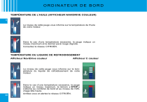 O R D I N AT E U R D E B O R D TEMPÉRATURE DE L’HUILE (AFFICHEUR NAVIDRIVE COULEUR) II Le niveau de cette jauge vous informe sur la température de l’huile de votre moteur. Dans le cas d’une température excessive, la jauge indique un niveau maximum et le dernier pavé rouge clignote. Consultez le réseau CITROËN. TEMPÉRATURE DU LIQUIDE DE REFROIDISSEMENT Afficheur NaviDrive couleur Afficheur C couleur Le niveau de cette jauge vous informe sur la température du liquide de refroidissement de votre moteur. 44 Dans le cas d’une température excessive, la jauge indique un niveau maximum, le témoin « STOP » s’allume au combiné de bord et au niveau de l’Affichage tête haute. Arrêtez-vous et alertez le réseau CITROËN. ">