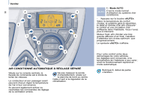 Ventiler 58 1 - Mode AUTO C’est le mode normal d’utilisation du système d’air conditionné. - Appuyez sur la touche «AUTO». Selon la température de confort choisie, le système gère la répartition, le débit et l’entrée d’air afin d’assurer le confort et une circulation d’air suffisante dans l’habitacle. Vous n’avez plus à intervenir. Moteur froid, afin d’éviter une trop grande diffusion d’air froid, l’aération n’atteindra son niveau optimum que progressivement. Le symbole «AUTO» s’affiche. Pour votre confort entre deux démarrages de votre véhicule, les réglages sont conservés, si la température de l’habitacle a peu varié ; sinon le fonctionnement reprend en mode automatique. AIR CONDITIONNÉ AUTOMATIQUE À RÉGLAGE SÉPARÉ Située sur la console centrale, la façade de commande est à droite du levier de vitesses. Le conducteur et son passager avant peuvent chacun régler la température de l’air à leur convenance. Ils peuvent également activer ou neutraliser les commandes de réglage de la ventilation arrière. Ne pas masquer la sonde d’ensoleillement, située sur la planche de bord au centre. Celle-ci sert à la régulation de la climatisation. Rubrique 6, début de partie «Ventiler». 3 - Réglage température passager La valeur demandée est affichée (de 14 à 28 ; valeur de confort = 21). L’écart maximum entre la valeur affichée du conducteur et du passager ne peut être supérieur à 5. Si vous utilisez ces réglages manuels, le symbole AUTO s’éteint. Appuyez sur les touches + et correspondantes pour la modifier. Pour égaliser le réglage côté passager avec celui côté conducteur : - air conditionné avec la version «MONO», appuyez sur la touche MONO. - air conditionné avec la version «REAR», appuyez plus de deux secondes sur la touche +. En entrant dans le véhicule, la température à l’intérieur peut être beaucoup plus froide (ou plus chaude) que la température de confort. Il n’est pas utile de modifier la valeur affichée pour atteindre rapidement le confort souhaité. Le système utilisera ses performances maximales pour atteindre la valeur de confort fixée. 4 - Réglage de la répartition d’air Une pression sur la ou les touche(s) correspondante(s) 4 permet d’orienter le débit d’air vers : - le pare-brise, - les aérateurs latéraux et les aérateurs centraux, - les aérateurs latéraux, les aérateurs centraux et les pieds, - le pare-brise et les pieds, - les pieds. Le témoin correspondant à l’orientation choisie 4 s’allume. 5 - Réglage de la ventilation arrière (version «REAR») Pour permettre le réglage de la ventilation aux passagers arrière, appuyez sur la touche REAR. Le symbole de la ventilation arrière s’affiche. Les molettes de réglage du débit d’air des aérateurs latéraux du rang 2 sont opérationnelles et réglables. Pour neutraliser les commandes de la ventilation arrière, appuyez une nouvelle fois sur la touche REAR. Le symbole de la ventilation arrière s’éteint. Veillez à ne pas obstruer les aérateurs latéraux et les sorties d’air sur le plancher. Version MONO Un appui sur cette touche permet d’obtenir une température homogène dans tout l’habitacle. La valeur de référence est sélectionnée par le conducteur. ERGONOMIE et CONFORT 2 - Réglage température conducteur 59 Ventiler 3 60 Ventiler 6 - Réglage du débit d’air - Tournez respectivement la molette de réglage 6 vers la droite ou vers la gauche pour augmenter ou diminuer le débit d’air. Sur l’écran, les pales du ventilateur se foncent lorsqu’on augmente le débit d’air. 7 - Neutralisation du système - Tournez la molette de réglage du débit d’air 6 vers la gauche jusqu’à extinction de l’afficheur. Cette action neutralise toutes les fonctions du système, à l’exception du dégivrage de la lunette arrière. Votre réglage de confort n’est plus maintenu et s’éteint. Pour votre confort, évitez de rester dans la position neutralisation. - Une nouvelle action sur la molette 6, la touche «Visibilité» ou la touche «AUTO» réactive le système avec les valeurs précédant la neutralisation. Le clignotement des points de séparation des chiffres des valeurs de réglage est le signal d’un dysfonctionnement de la climatisation. Consultez le réseau CITROËN. 8 - Entrée d’air extérieur / Recirculation d’air intérieur - Appuyez sur cette touche pour faire recirculer l’air à l’intérieur. Le symbole et le témoin 8 de recirculation d’air s’affichent. La recirculation isole l’habitacle des odeurs et fumées extérieures. Évitez le fonctionnement prolongé en recirculation d’air intérieur (risque de buée et de dégradation de la qualité de l’air). - Une nouvelle pression sur cette touche assure le retour à la gestion automatique de l’entrée d’air. 9 - Marche / Arrêt air conditionné - Une pression sur cette touche active le fonctionnement automatique de l’air conditionné. Le symbole et le témoin 9 s’affichent. - Une nouvelle pression sur cette touche arrête l’air conditionné. Le symbole et le témoin 9 s’éteignent. ">