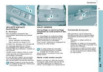 Vous trouverez ci-dessous de brèves informations sur Sécurité enfant électrique, Hayon arrière. La fonction de sécurité enfant électrique neutralise les commandes électriques à l'arrière : lève-vitres, portes coulissantes et toits ouvrants. Le hayon arrière se verrouille automatiquement en roulant à partir de 10 km/h et se déverrouille à l'ouverture des portes avant. En cas d'urgence, une commande de secours manuelle permet de déverrouiller le hayon depuis l'intérieur.
