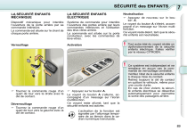 SÉCURITÉ des ENFANTS LA SÉCURITÉ ENFANTS MÉCANIQUE LA SÉCURITÉ ENFANTS ÉLECTRIQUE Dispositif mécanique pour interdire l’ouverture de la porte arrière par sa commande intérieure. La commande est située sur le chant de chaque porte arrière. Système de commande pour interdire l’ouverture des portes arrière par leurs commandes intérieures et l’utilisation des lève-vitres arrière. La commande est située sur la porte conducteur, avec les commandes de lève-vitres. Verrouillage Activation Neutralisation Appuyez de nouveau sur le bouton A. Le voyant du bouton A s’éteint, accompagné d’un message sur l’écran multifonction. Ce voyant reste éteint, tant que la sécurité enfants est neutralisée. ! ! Tournez la commande rouge d’un quart de tour vers la droite avec la clé de contact. Déverrouillage Tournez la commande rouge d’un quart de tour vers la gauche avec la clé de contact. Appuyez sur le bouton A. Le voyant du bouton A s’allume, accompagné d’un message sur l’écran multifonction. Ce voyant reste allumé, tant que la sécurité enfants est activée. 7 Tout autre état du voyant révèle un dysfonctionnement de la sécurité enfants électrique. Faites vérifier par le réseau CITROËN. Ce système est indépendant et ne remplace en aucun cas la commande de verrouillage centralisé. Vérifiez l’état de la sécurité enfants à chaque mise du contact. Retirez toujours la clé de contact en quittant le véhicule, même pour une courte durée. En cas de choc violent, la sécurité enfants électrique se désactive automatiquement pour permettre la sortie des passagers arrière. L’activation de la fonction est signalée par l’allumage temporaire de ce témoin dans le cadran numérique translucide. 89 ">