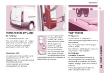23 Ouvertures De l’extérieur Les deux battants s’ouvrent à 90°. Pour ouvrir, tirez la poignée vers vous puis tirez le levier pour ouvrir la porte gauche. Pour fermer, commencez par la porte gauche puis fermez la porte droite. Ouverture à 180° Un système de tirant escamotable permet de porter l’ouverture de 90° à 180°. Dégagez le tirant vers vous quand la porte est partiellement ouverte. Le tirant reprendra son accrochage automatiquement à la fermeture. VOLET ARRIÈRE Lors d’un stationnement avec les portes arrière ouvertes à 90°, celles-ci masquent les feux arrière. Afin de signaler votre position aux usagers, circulant dans le même sens qui pourraient ne pas avoir remarqué votre arrêt, utilisez un triangle de présignalisation ou tout autre dispositif prescrit par la législation et réglementation de votre pays. De l’extérieur Si votre véhicule en est équipé, le verrouillage/déverrouillage s’effectue avec la télécommande. Pour l’ouvrir, actionnez la commande puis soulevez le volet. Pour refermer le volet en position haute, une dragonne est à votre disposition. De l’intérieur Commande de secours En cas d’incident de fonctionnement du déverrouillage centralisé, elle permet de décondamner le volet arrière par l’intérieur. Rabattez les sièges arrière afin d’accéder à la serrure. Introduisez un petit tournevis dans cet orifice pour déverrouiller le volet. PRÊT à PARTIR PORTES ARRIÈRE BATTANTES 2 ">