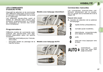 Vous trouverez ci-dessous de brèves informations pour C3 Picasso Essuie-vitres. Découvrez les commandes manuelles et les programmations automatiques des essuie-vitres avant et arrière de votre véhicule. Apprenez à ajuster la cadence de balayage en fonction des conditions climatiques, à utiliser le lave-vitre et à activer/désactiver l'essuyage arrière automatique au passage de la marche arrière.