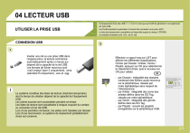04 LECTEUR USB UTILISER LA PRISE USB CONNEXION USB Cet équipement lit les clés USB 1.1, 1.2 et 2.0, ainsi que les iPod® de génération 5 et supérieures par prise USB. Les iPod® précédant la génération 5 doivent être connectés via la prise JACK. La liste des équipements compatibles est disponible auprès du réseau CITROËN. Les playlists acceptées sont .m3u, .pls et .wpl. 2 1 Insérer une clé ou une prise USB dans l’espace prévu, la lecture commence automatiquement après un temps qui dépend de la capacité de la clé USB. Les formats de fichier reconnus sont .mp3 (mpeg1 layer 3 uniquement), .wma (standard 9 uniquement), .wav et .ogg. Le système constitue des listes de lecture (mémoire temporaire) dont le temps de création dépend de la capacité de l’équipement USB. Les autres sources sont accessibles pendant ce temps. Les listes de lecture sont actualisées à chaque coupure du contact ou connexion d’une clé USB. Lors d’une première connexion, les pistes sont classées par dossier. Lors d’une reconnexion, le système de classement préalablement choisi est conservé. Effectuer un appui long sur LIST pour afficher les différentes classifications. Choisir par Dossier / Artiste / Genre / Playlist, appuyer sur OK pour sélectionner le classement choisi, puis à nouveau sur OK pour valider. OK - par Dossier : intégralité des dossiers contenant des fichiers audio reconnus sur le périphérique, classés par ordre alphabétique sans respect de l’arborescence. - par Artiste : intégralité des noms des artistes définis dans les ID3 Tag, classés par ordre alphabétique. - par Genre : intégralité des genres définis dans les ID3 Tag. - par Playlist : suivant les playlists enregistrées sur le périphérique USB. 211 04 LECTEUR USB UTILISER LA PRISE USB 3 Appuyer sur LIST pour afficher la liste des Dossier / Genre / Artiste / Playlist de l’équipement USB. Naviguer dans la liste avec les touches gauche/droite et haut/bas. Valider la sélection en appuyant sur OK. 4 CONNEXION IPOD® PAR LA PRISE USB 1 Les listes disponibles sont Artiste, Genre et Playlist (telles que définies dans l’iPod®). Le fonctionnement est identique à celui d’un périphérique USB classique. Appuyer sur l’une de ces touches pour accéder à la piste précédente / suivante de la liste de classification en cours de lecture. Maintenir appuyée une des touches pour une avance ou un retour rapide. 5 212 Appuyer sur l’une de ces touches pour accéder au Genre, Dossier, Artiste ou Playlist précédent / suivant de la liste de classification en cours de lecture. Ne pas connecter de disque dur ou appareils USB autres que des équipements audio à la prise USB. Cela risque d’endommager votre installation. RÉGLER LE VOLUME DE LA SOURCE AUXILIAIRE UTILISER L’ENTRÉE AUXILIAIRE (AUX) CÂBLE JACK / RCA NON FOURNI L’entrée auxiliaire, JACK et RCA, permet de brancher un équipement nomade (lecteur MP3...). Ne pas connecter un même équipement via la prise USB et la prise JACK en même temps. 1 Régler d’abord le volume de votre équipement nomade. 2 Régler ensuite le volume de votre autoradio. 1 Brancher l’équipement nomade (lecteur MP3…) à la prise JACK ou aux prises audio (blanche et rouge, de type RCA) à l’aide d’un câble adapté. L’affichage et la gestion des commandes se font via l’équipement nomade. 2 Effectuer des pressions successives sur la touche SOURCE et sélectionner AUX. 213 ">
