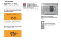 28 Poste de conduite INDICATEUR D’ENTRETIEN L’afficheur situé dans le combiné, vous informe de l’échéance de la prochaine révision à effectuer conformément au plan «Constructeur» communiqué dans le carnet d’entretien. Cette information est déterminée en fonction du kilométrage parcouru depuis la précédente révision. Vous êtes averti par le clignotement du témoin de pression d’huile moteur et l’affichage d’un message sur le combiné à chaque démarrage. L’entretien de votre véhicule doit alors être réalisé le plus rapidement possible. RHÉOSTAT D’ÉCLAIRAGE Le rhéostat est actif lorsque les feux sont allumés. Se reporter à la liste des vérifications dans le carnet d’entretien qui vous a été remis à la livraison du véhicule. Quelques secondes après, l’afficheur revient à ses fonctions courantes. Utilisez les commandes + et - pour varier l’intensité de l’éclairage du combiné. ">