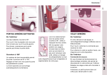 Vous trouverez ci-dessous de brèves informations pour Portes arrière battantes, Hayon arrière. Ce manuel décrit comment ouvrir et fermer les portes arrière battantes, y compris l'utilisation du système d'ouverture à 180°. Il explique aussi comment utiliser le hayon arrière, son verrouillage/déverrouillage à distance, et la procédure de déverrouillage de secours en cas de dysfonctionnement.